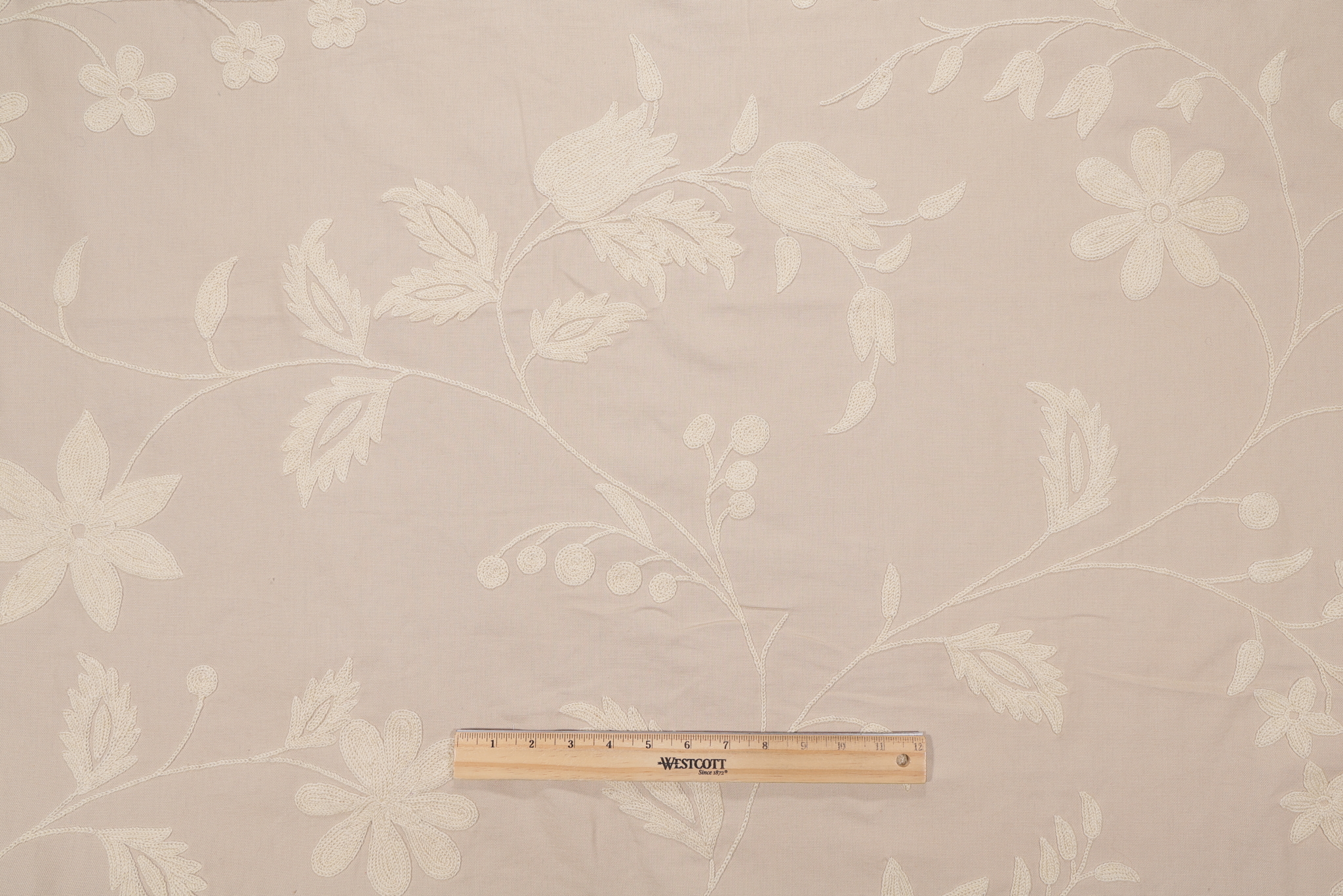 1.88 Yards Scalamandre Admar Crewel Embroidered Drapery Fabric in Cream Details