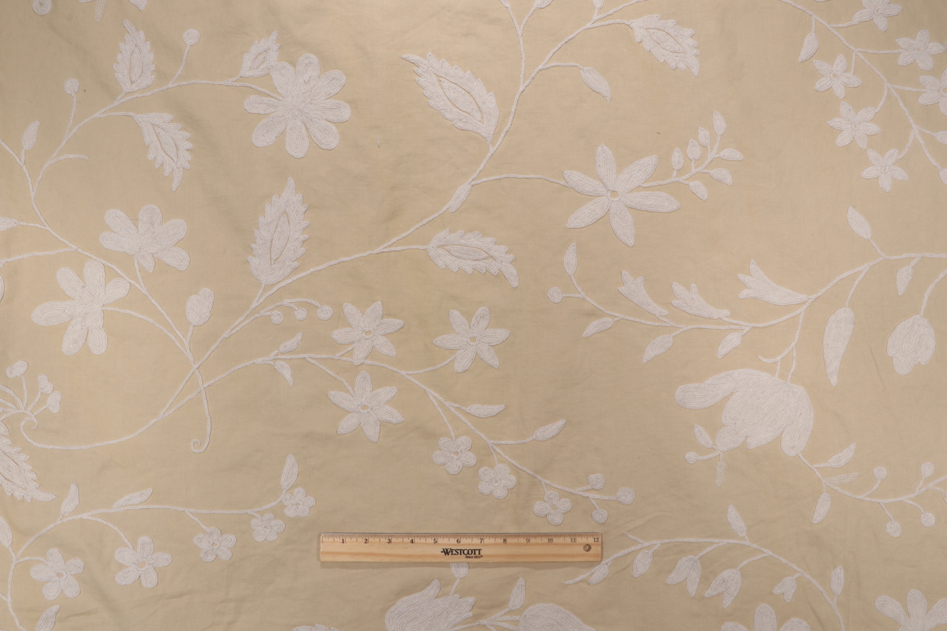 9.5 Yards Scalamandre Admar Crewel Embroidered Drapery Fabric in Cream Details