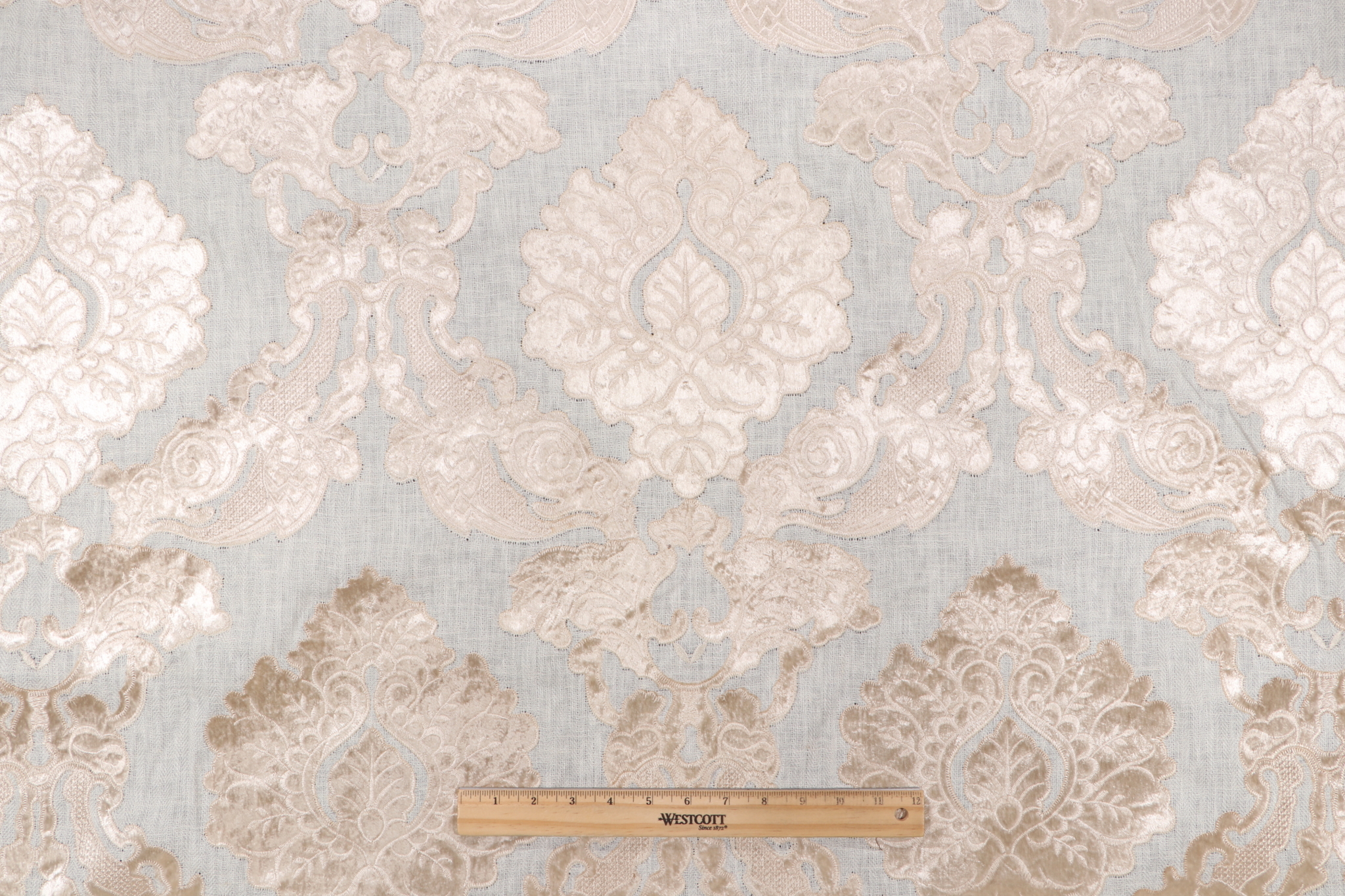 If you order Scalamandre Castellet Linen Embroidered Velvet Upholstery Fabric in Ivory before 2pm Central with expedited shipping, your order will ship the same business day, otherwise please allow 1-2 business days.How soon will this fabric ship?