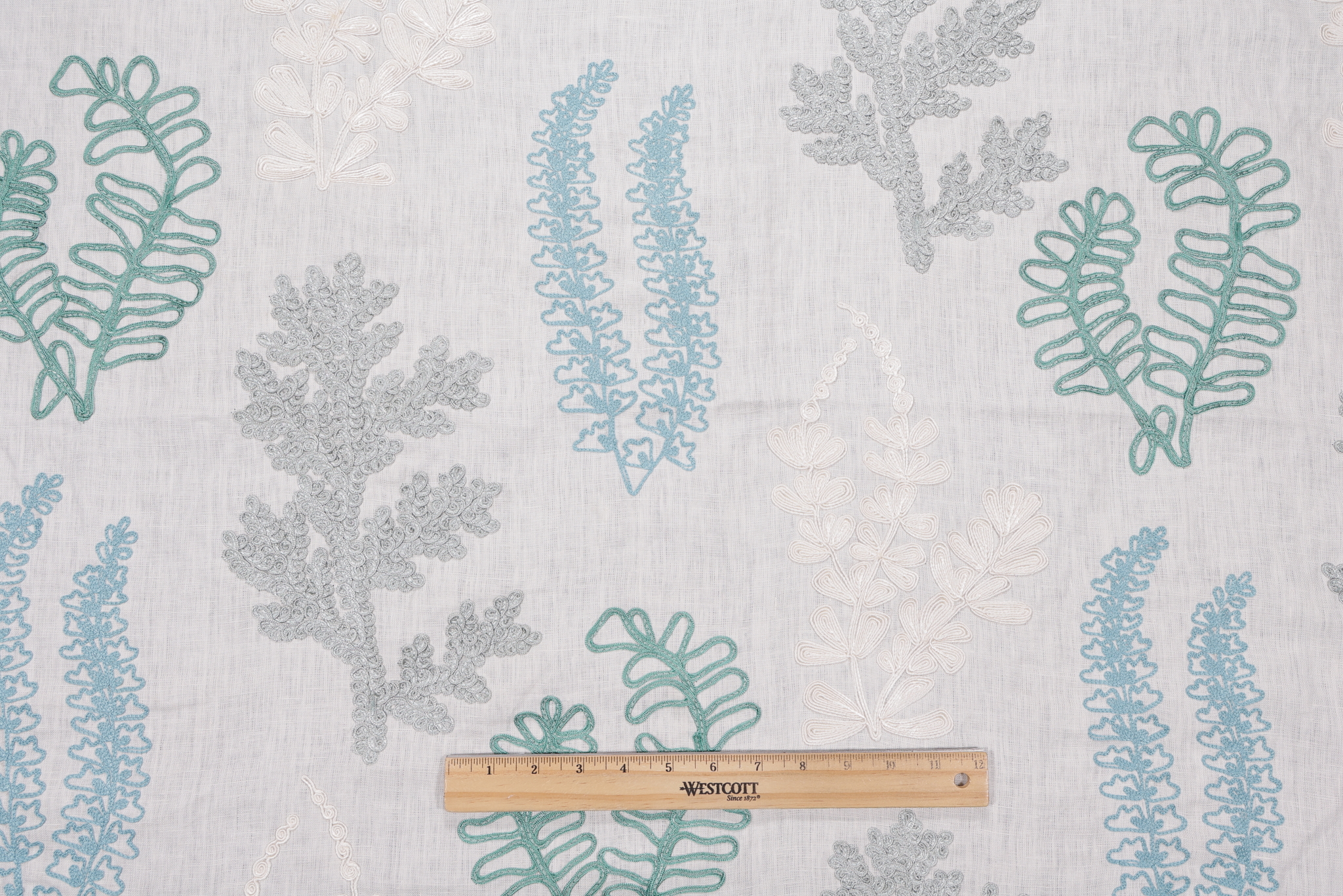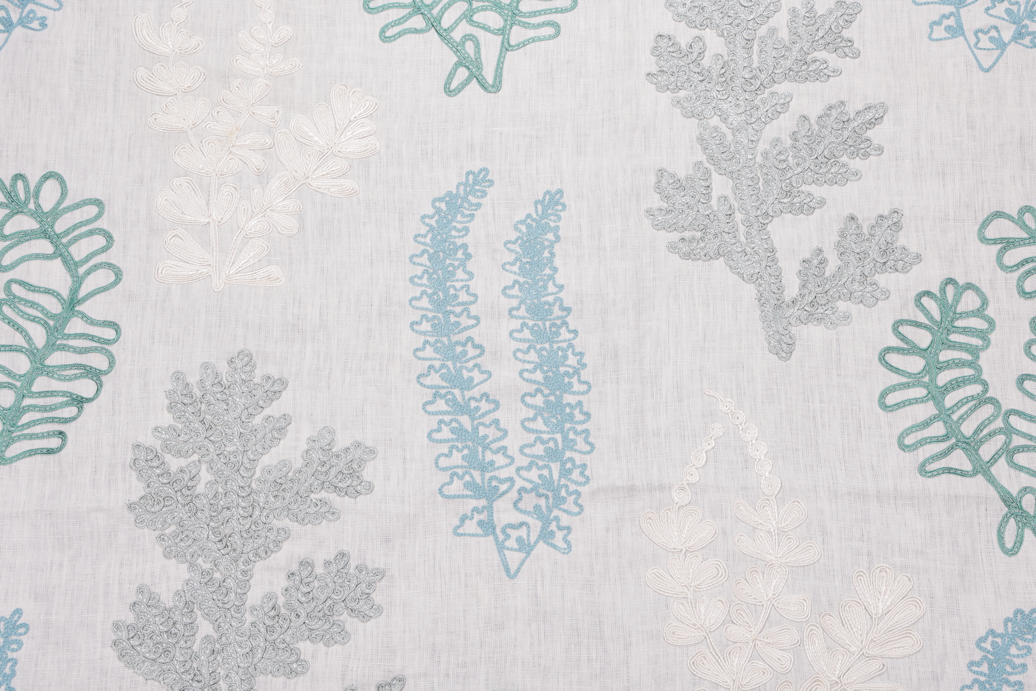 Scalamandre Seaweed Embroidered Drapery Fabric in Seaglass is a remnant, which is sold as a whole piece.