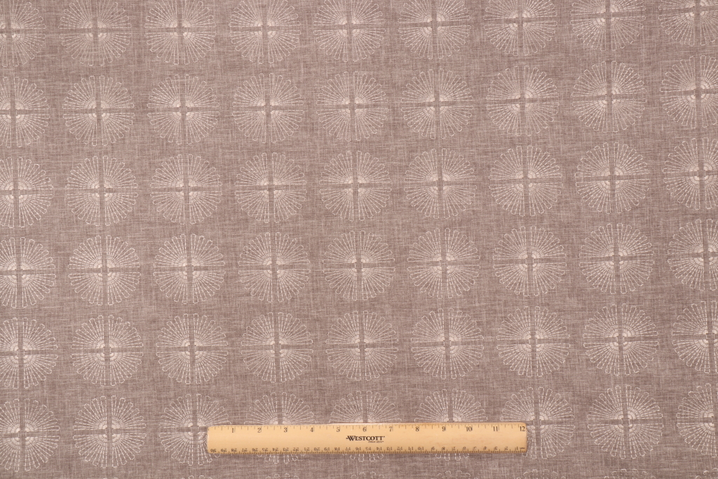 Now featuring 1 yards of Array Emb, a luxurious embroidered drapery fabric from Studio NYC. This premium textile from Studio NYC fabrics brings sophistication and quality to your high-end design projects. This fabric is suitable for short curtains, decorative tiebacks, or smaller window treatments. Rosy brown, gray, tan, and dark gray feature prominently in this fabric. Note: If you are unsure about the suitability of this fabric for your specific use case please contact us prior to ordering.