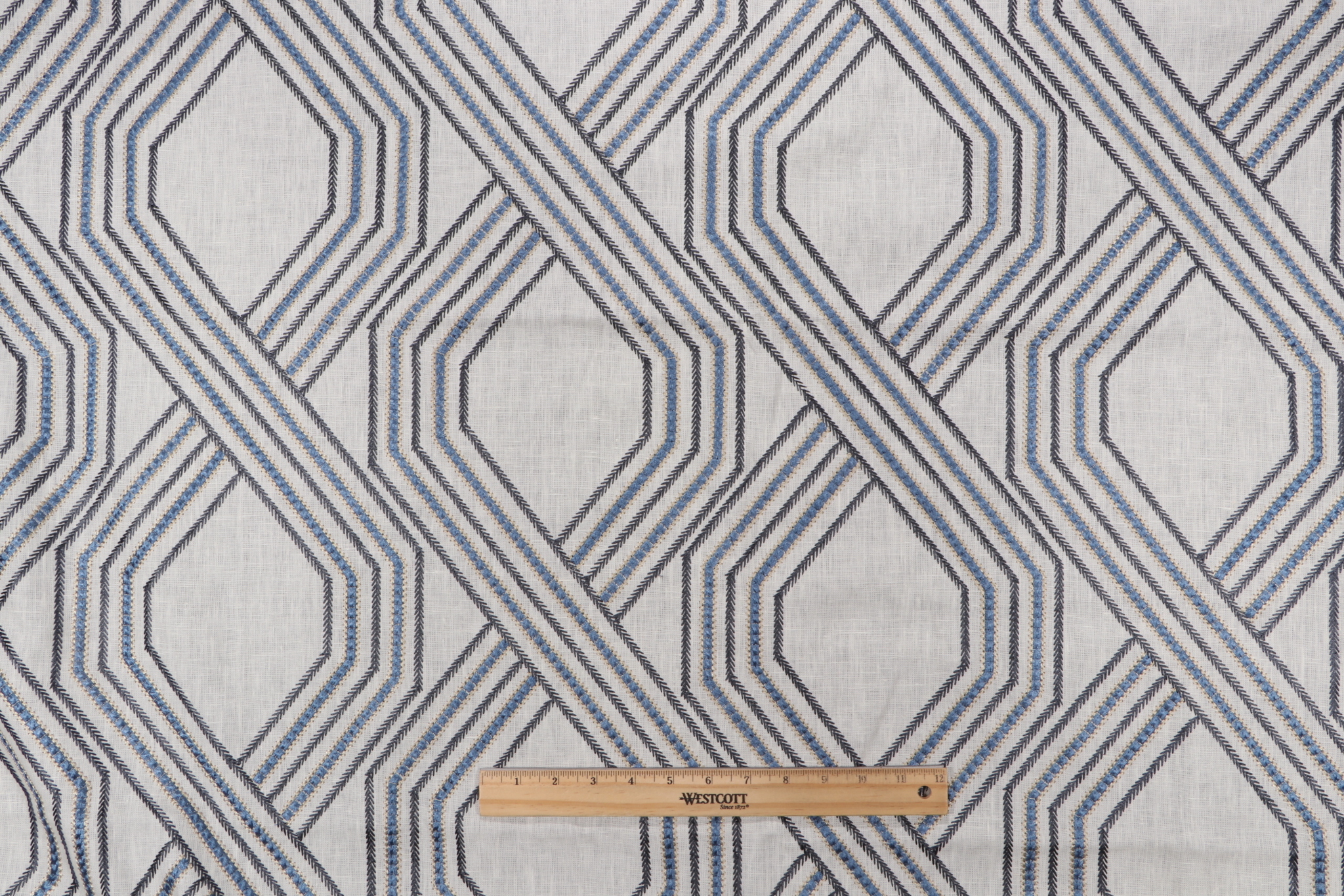 2 Yards Textile 360 Dancy Embroidered Linen Drapery Fabric in Blue Details