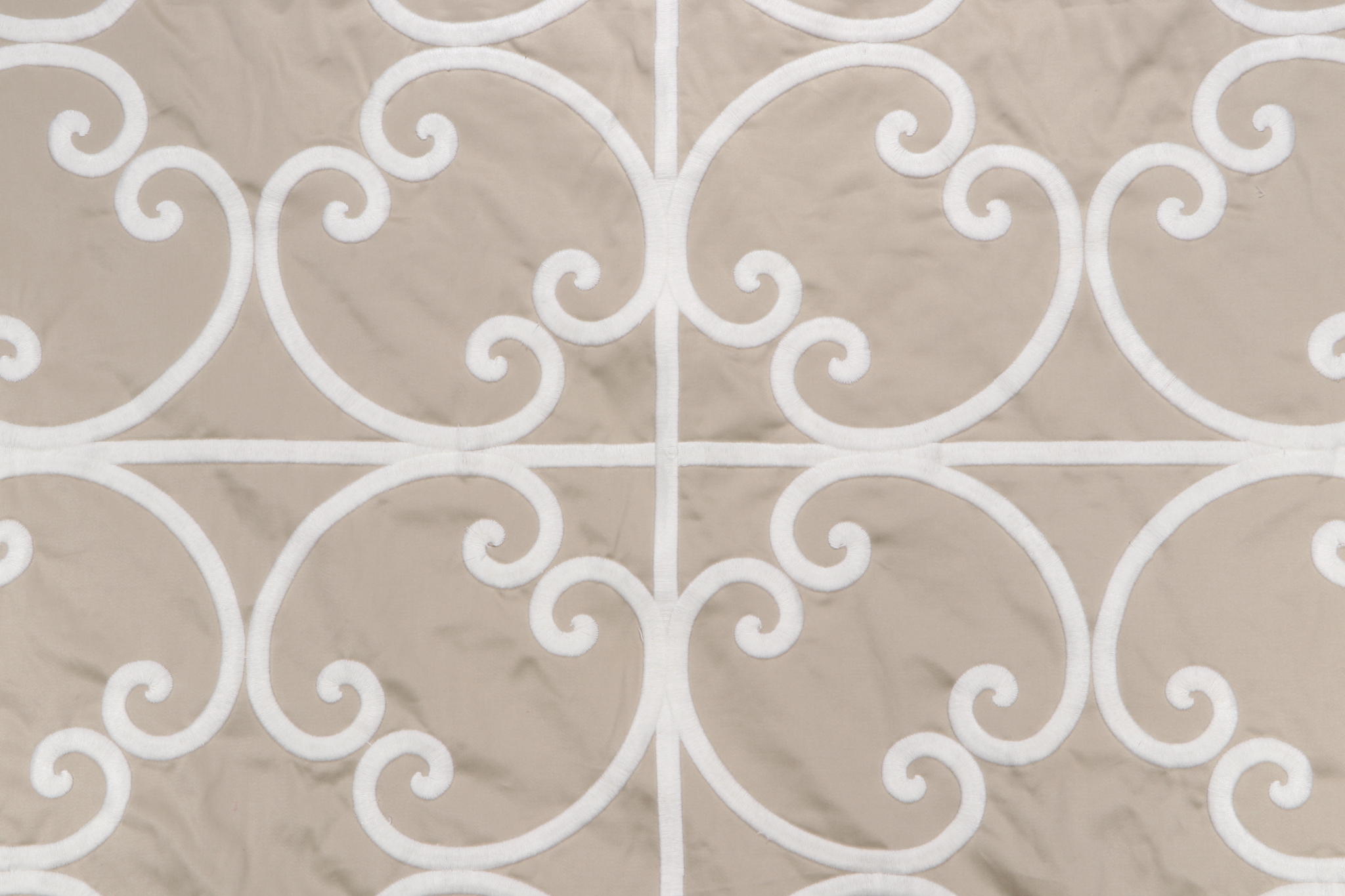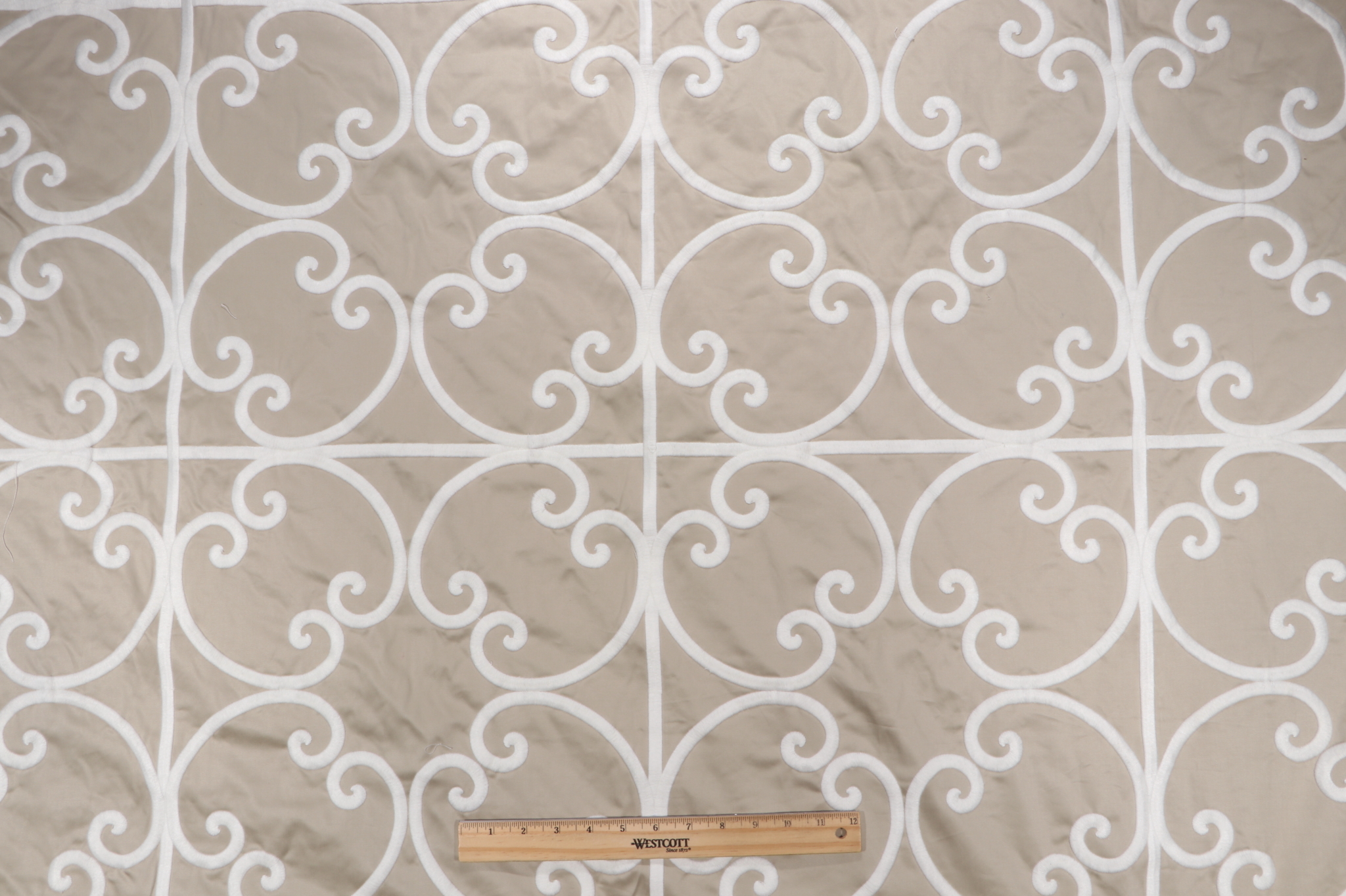 Thibaut Cernobbia W714202 Embroidered Drapery Fabric in Beige is a remnant. Fabric remnants refer to leftover pieces of fabric from production runs at manufacturing sites or pieces that remain from by the yard stock. The lengths of these remnants can vary from a few inches to several yards and are typically sold at a reduced price, since they represent remaining inventory.