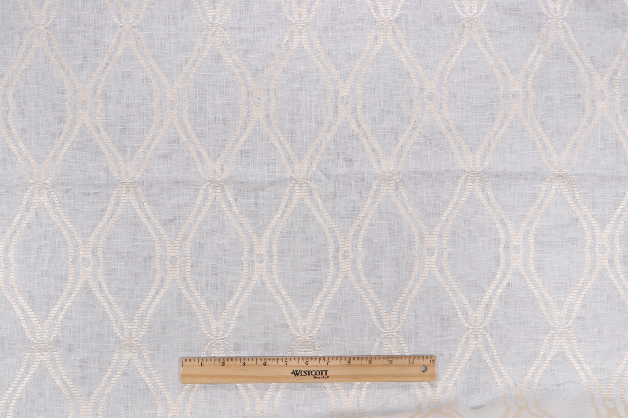 Thibaut Frankfurt W74108 Embroidered Linen Drapery Fabric in White is a remnant, which is sold as a whole piece.