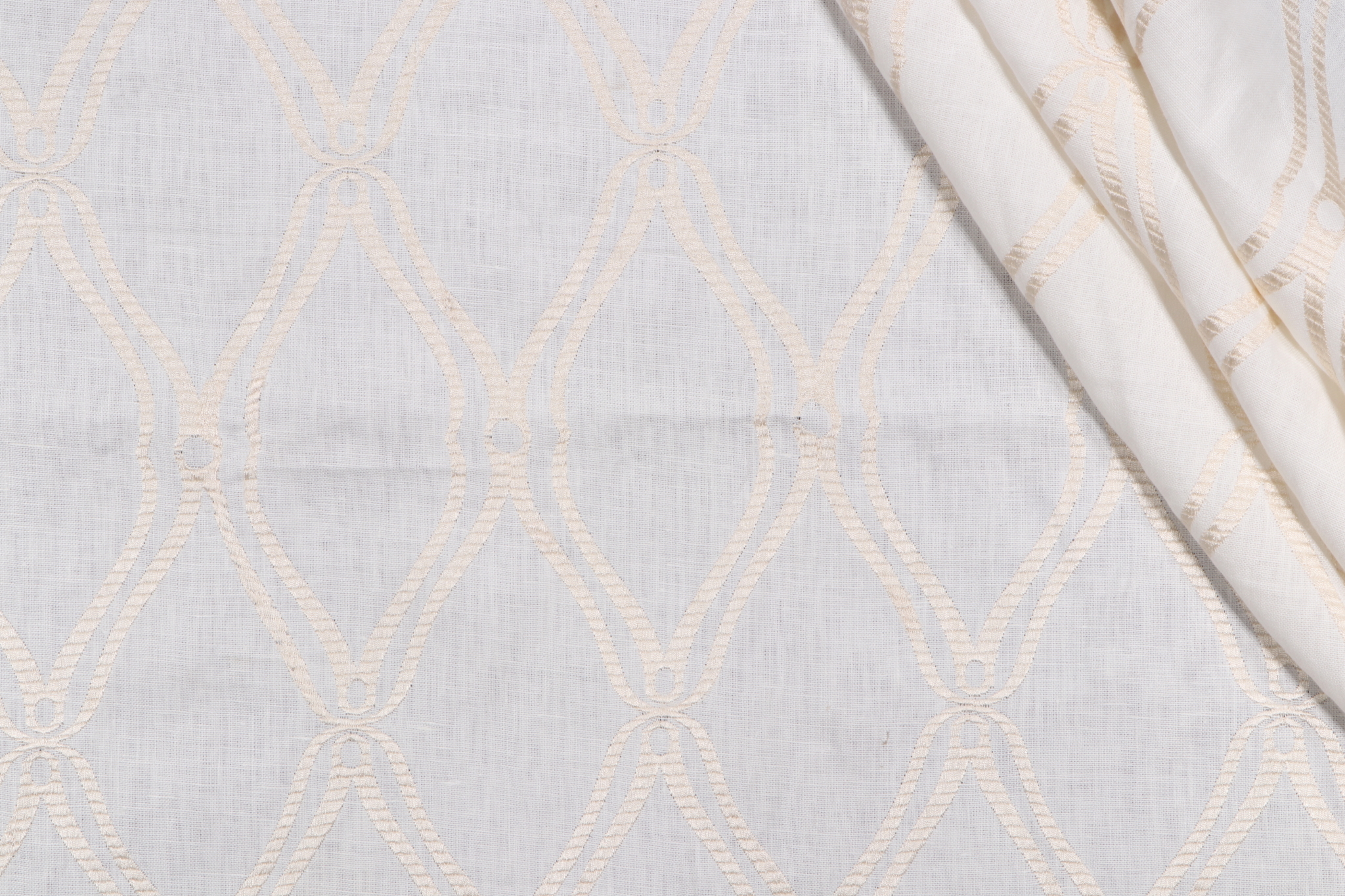 2.88 Yards Thibaut Frankfurt W74108 Embroidered Linen Drapery Fabric in White Details