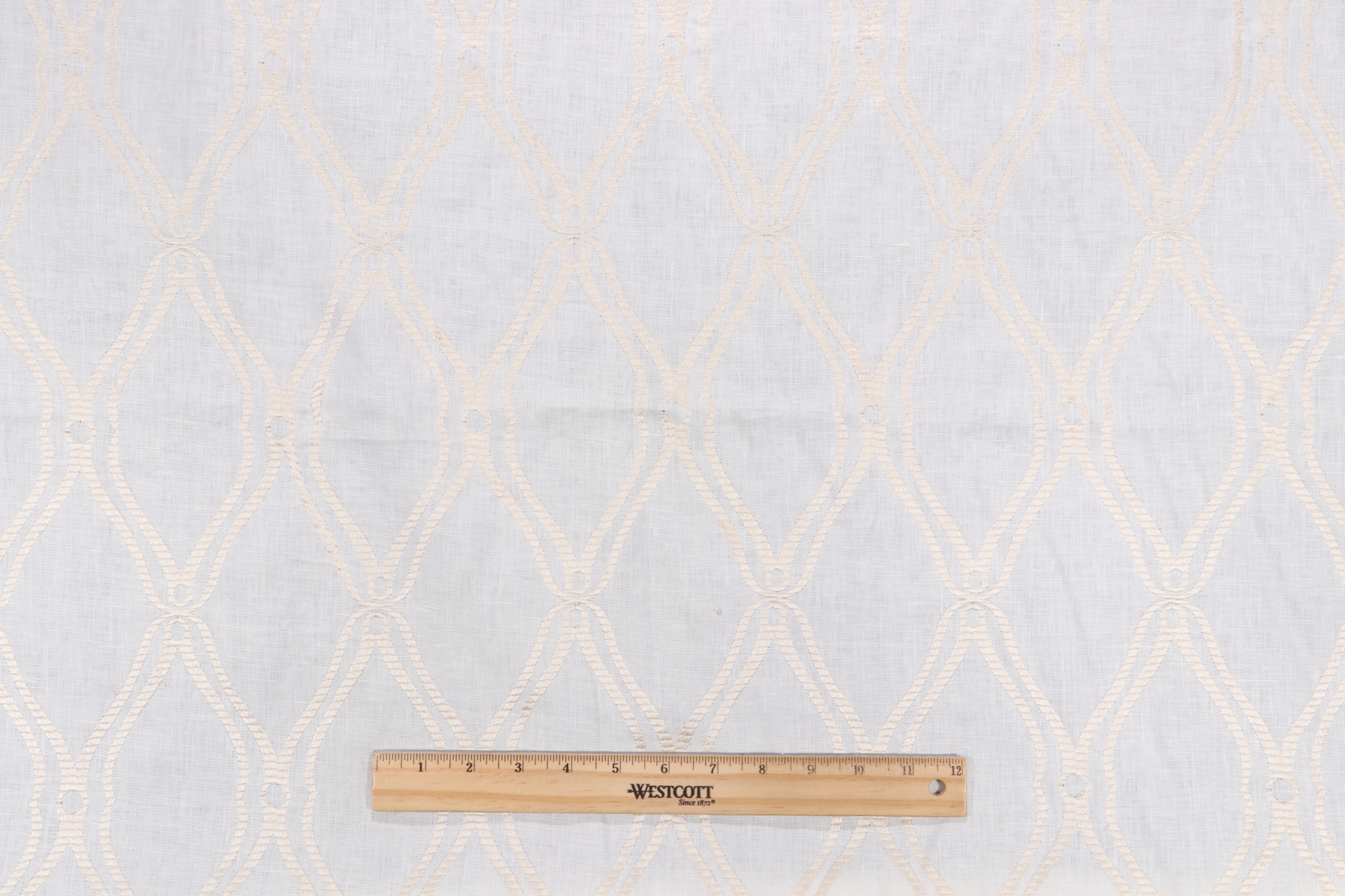 Thibaut Frankfurt W74108 Embroidered Linen Drapery Fabric in White is a remnant, which is sold as a whole piece.