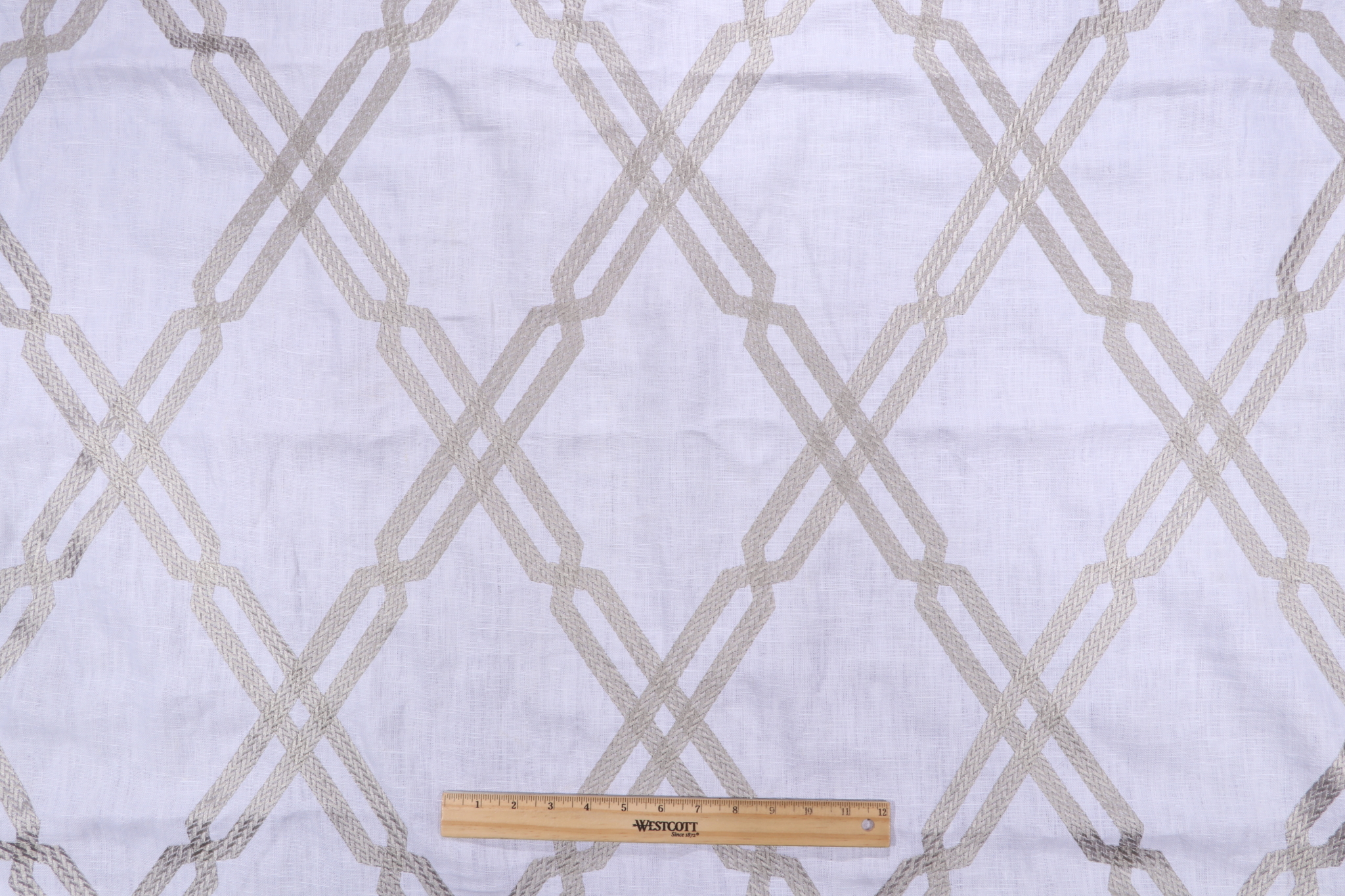 1.38 Yards Thibaut Fusion Trellis W736149 Embroidered Linen Drapery Fabric in Grey Details
