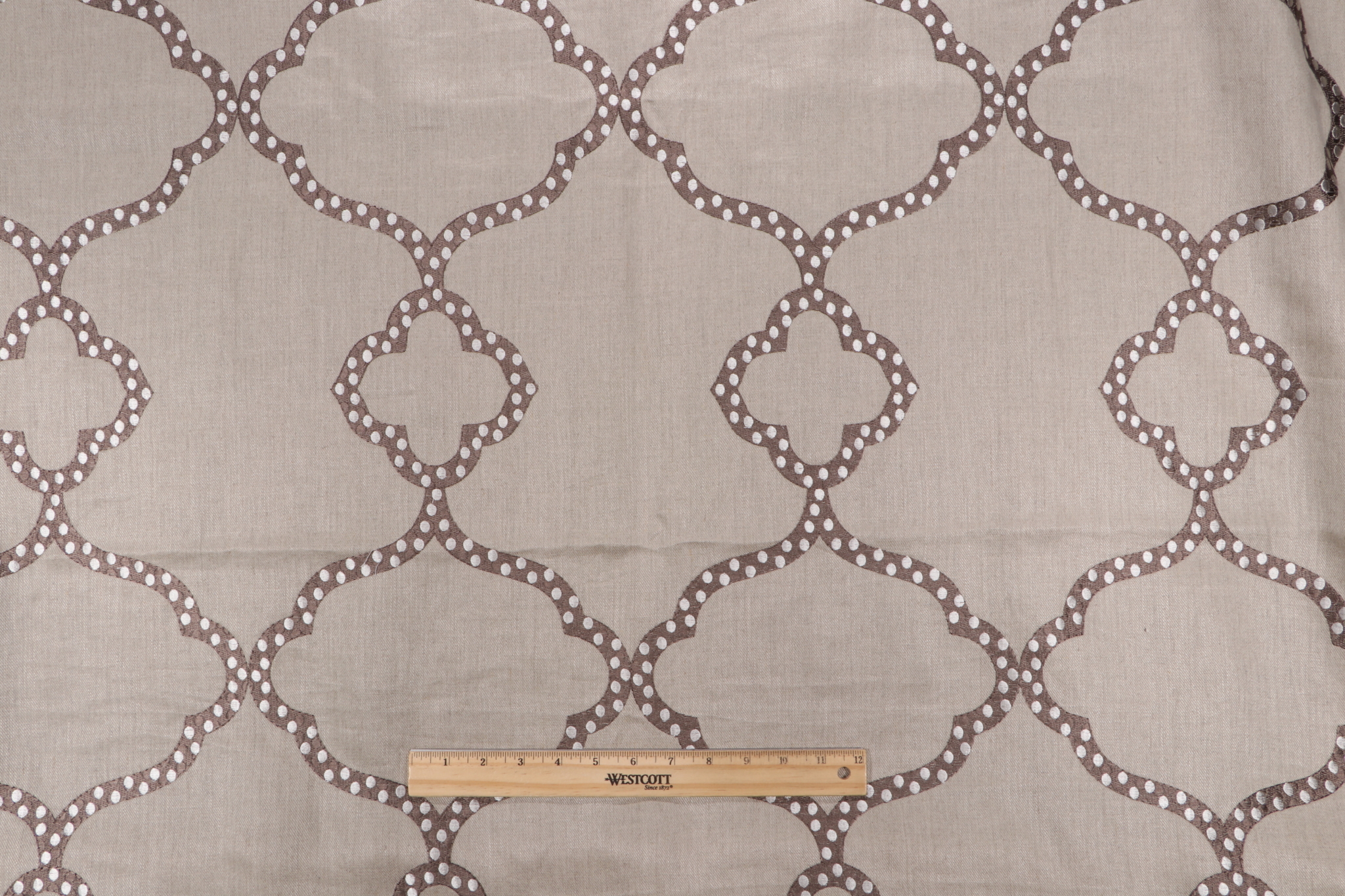 Thibaut Gibraltar W72771 Embroidered Drapery Fabric in Natural is a remnant. Fabric remnants refer to leftover pieces of fabric from production runs at manufacturing sites or pieces that remain from by the yard stock. The lengths of these remnants can vary from a few inches to several yards and are typically sold at a reduced price, since they represent remaining inventory.