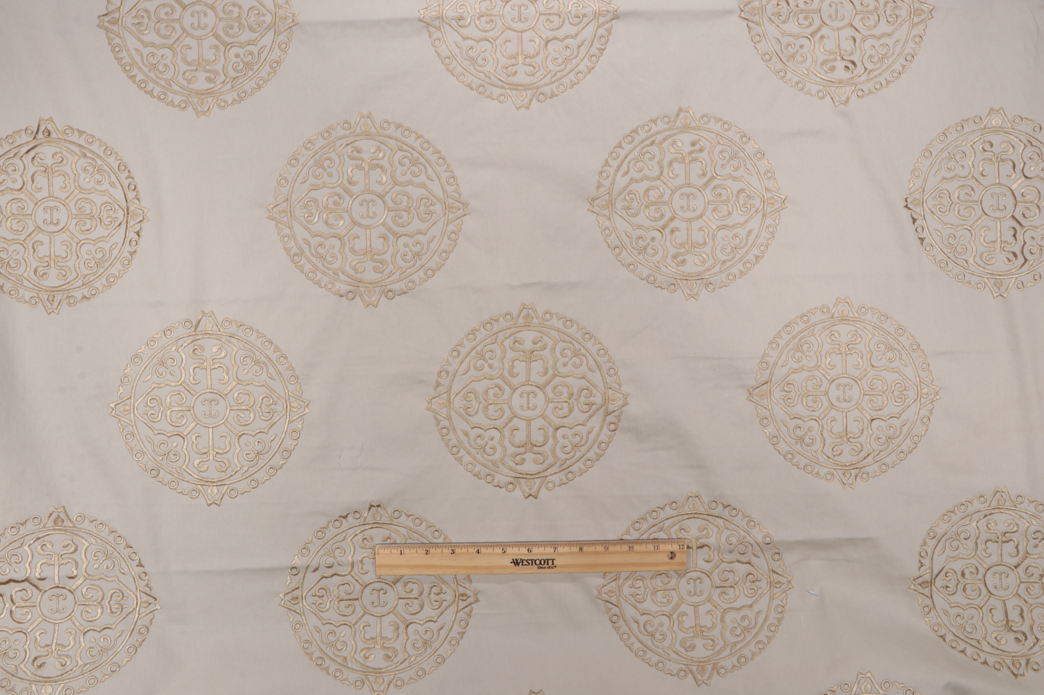 1.5 Yards Thibaut Halie W736102 Embroidered Drapery Fabric in Neutral Details