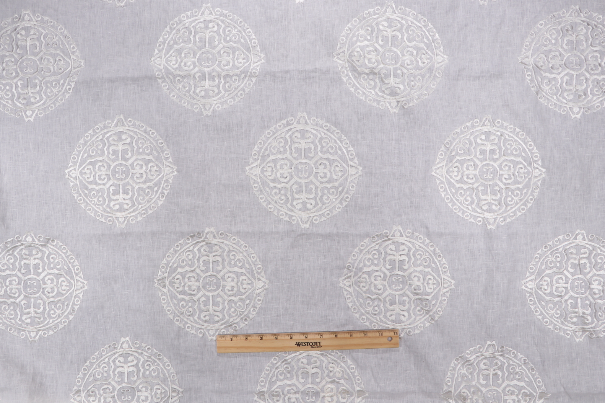 If you order 1.63 Yards Thibaut Halie W736127 Sheer Embroidered Drapery Fabric in White on Linen before 2pm Central with expedited shipping, your order will ship the same business day, otherwise please allow 1-2 business days.How soon will this fabric ship?
