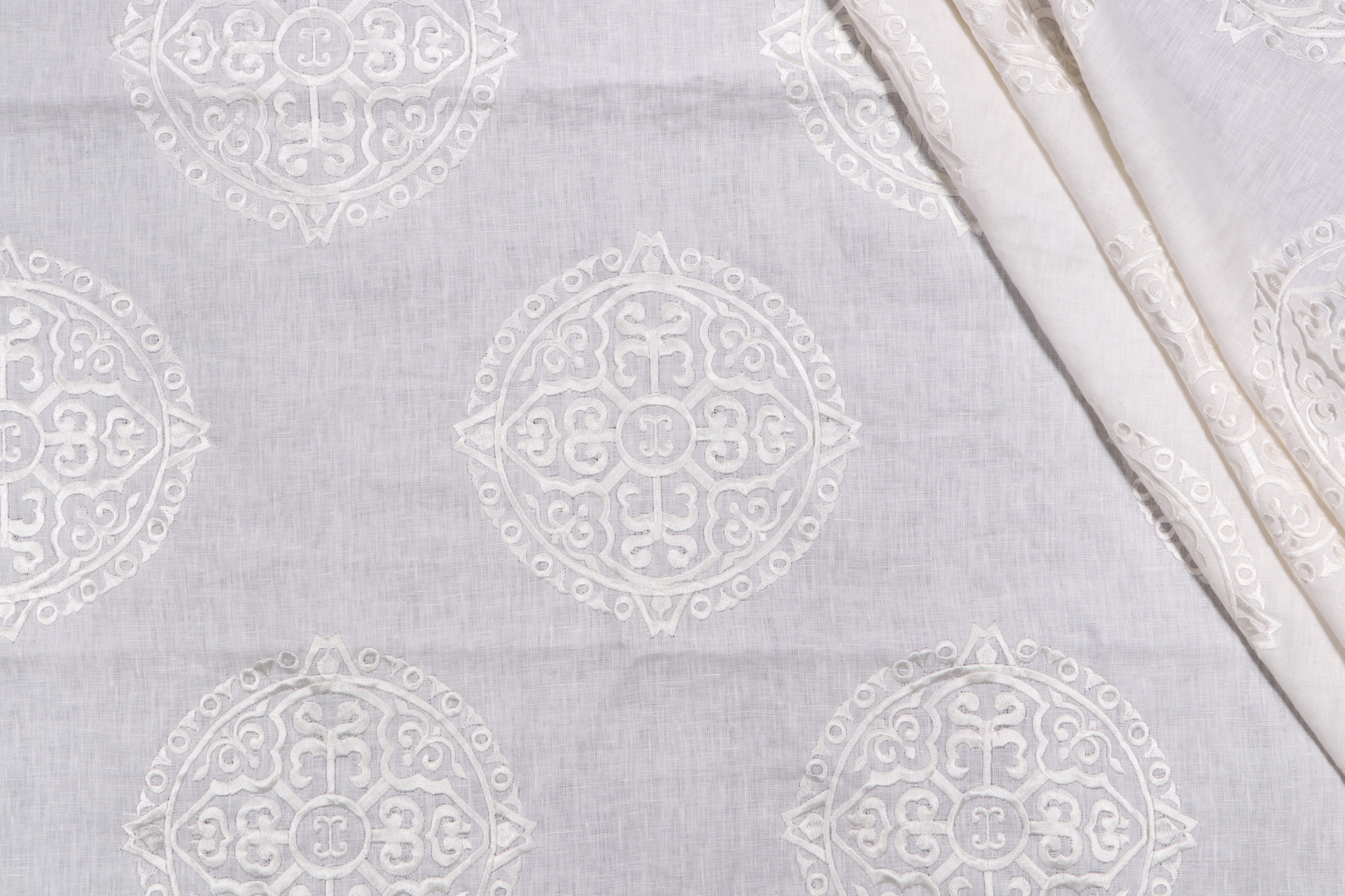 1.63 Yards Thibaut Halie W736127 Embroidered Drapery Fabric in White on Linen Details