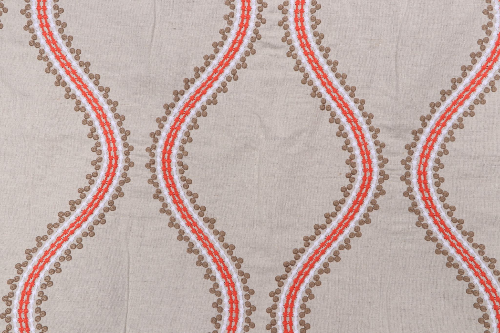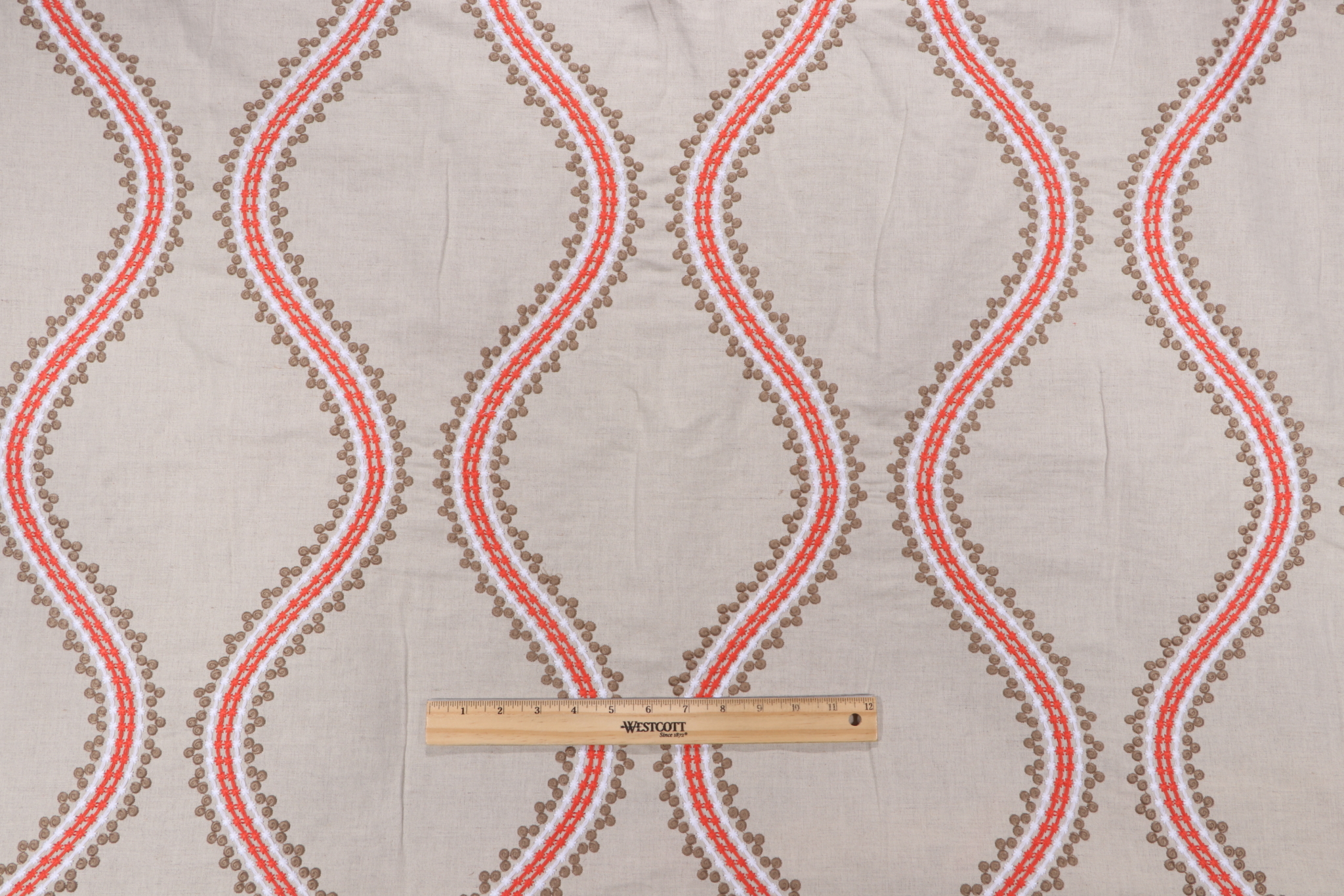 3.75 Yards Thibaut Juniper Ogee W764106 Embroidered Drapery Fabric in Coral and Stone Details