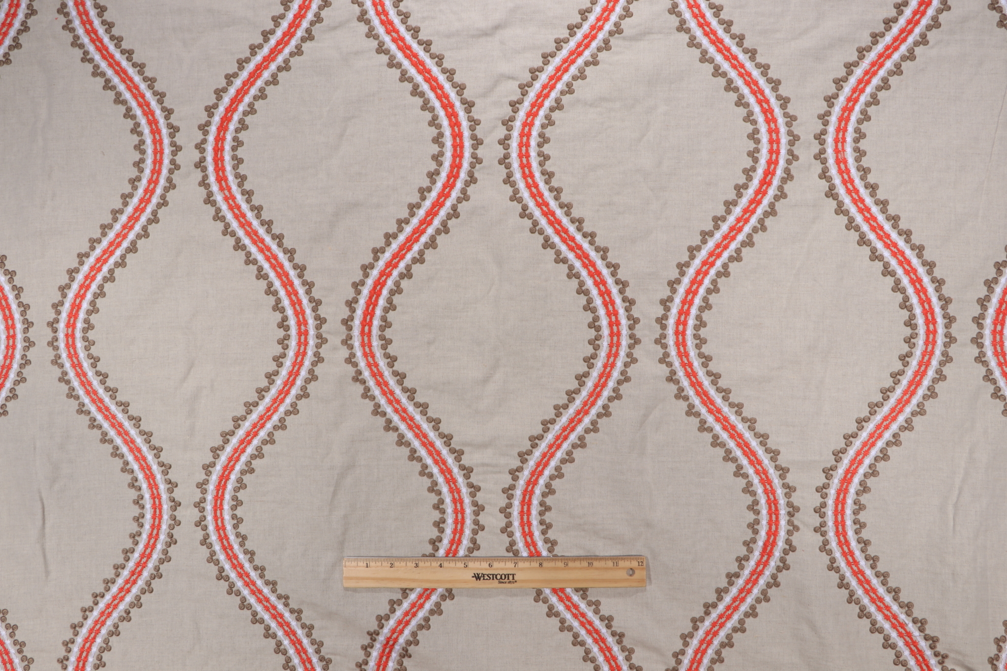 5.38 Yards Thibaut Juniper Ogee W764106 Embroidered Drapery Fabric in Stone and Coral Details