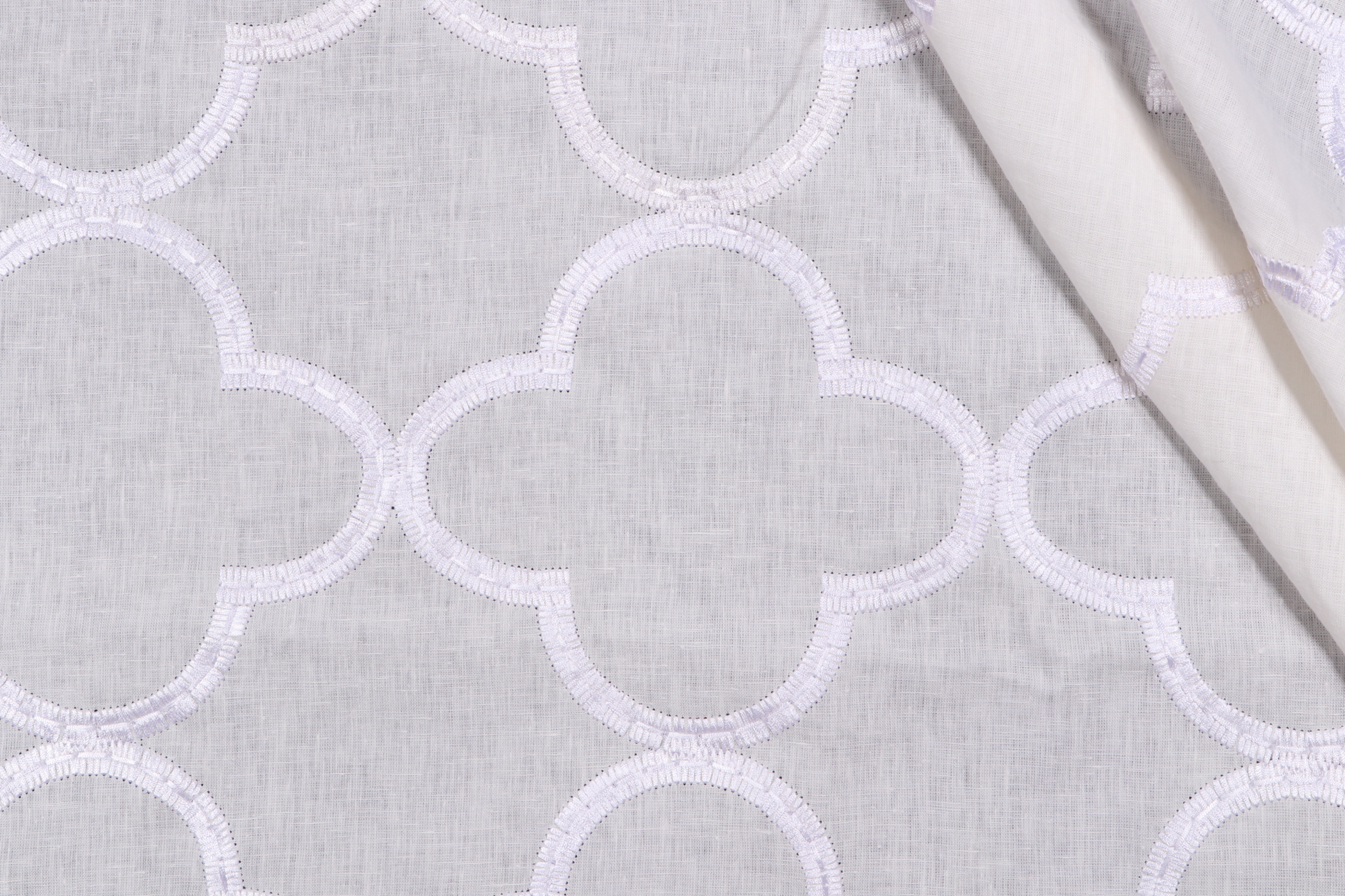 Thibaut Mara W716001 Embroidered Drapery Fabric in White is a remnant, which is sold as a whole piece.