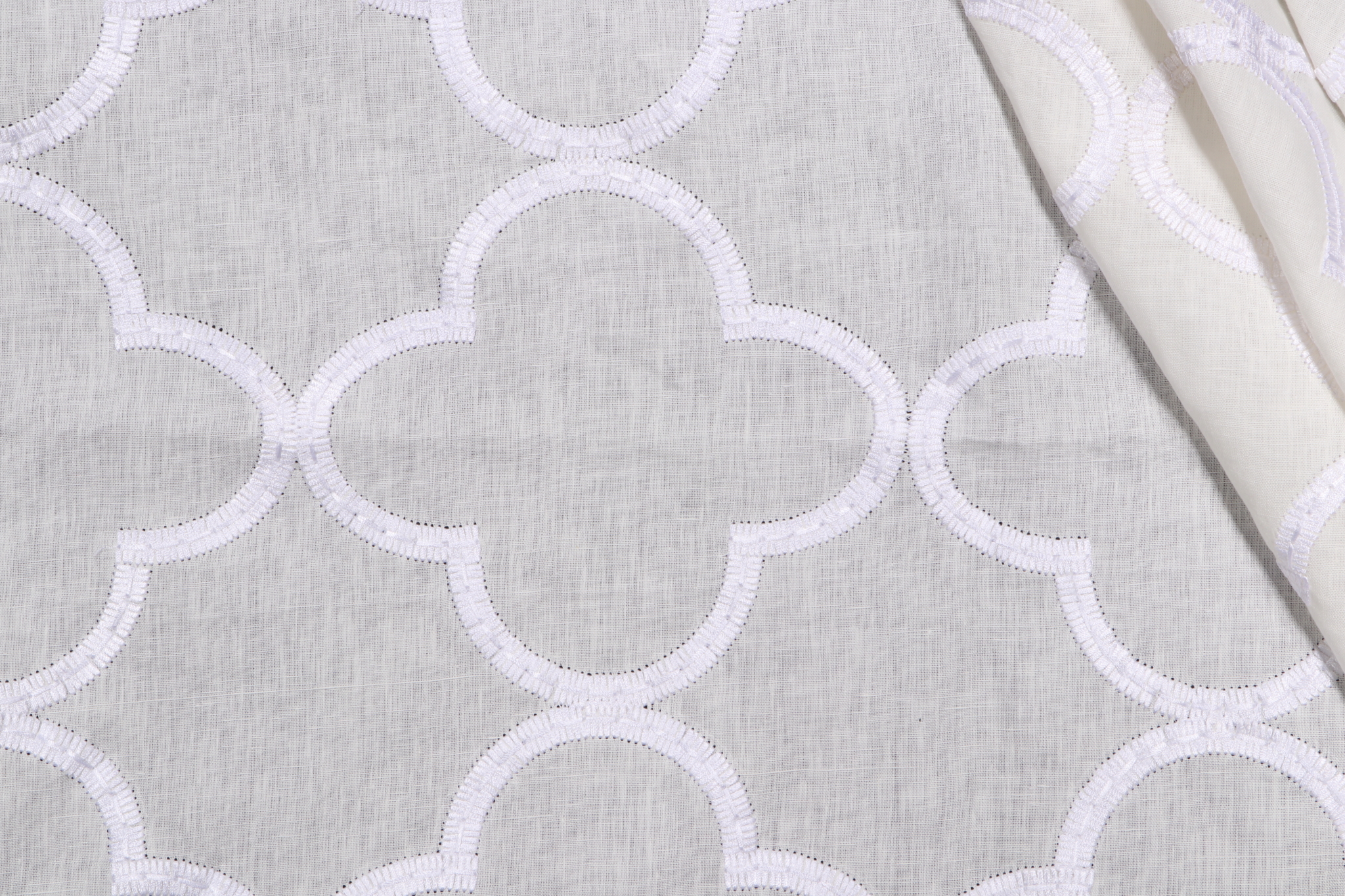 Thibaut Mara W716001 Embroidered Drapery Fabric in White is a remnant, which is sold as a whole piece.