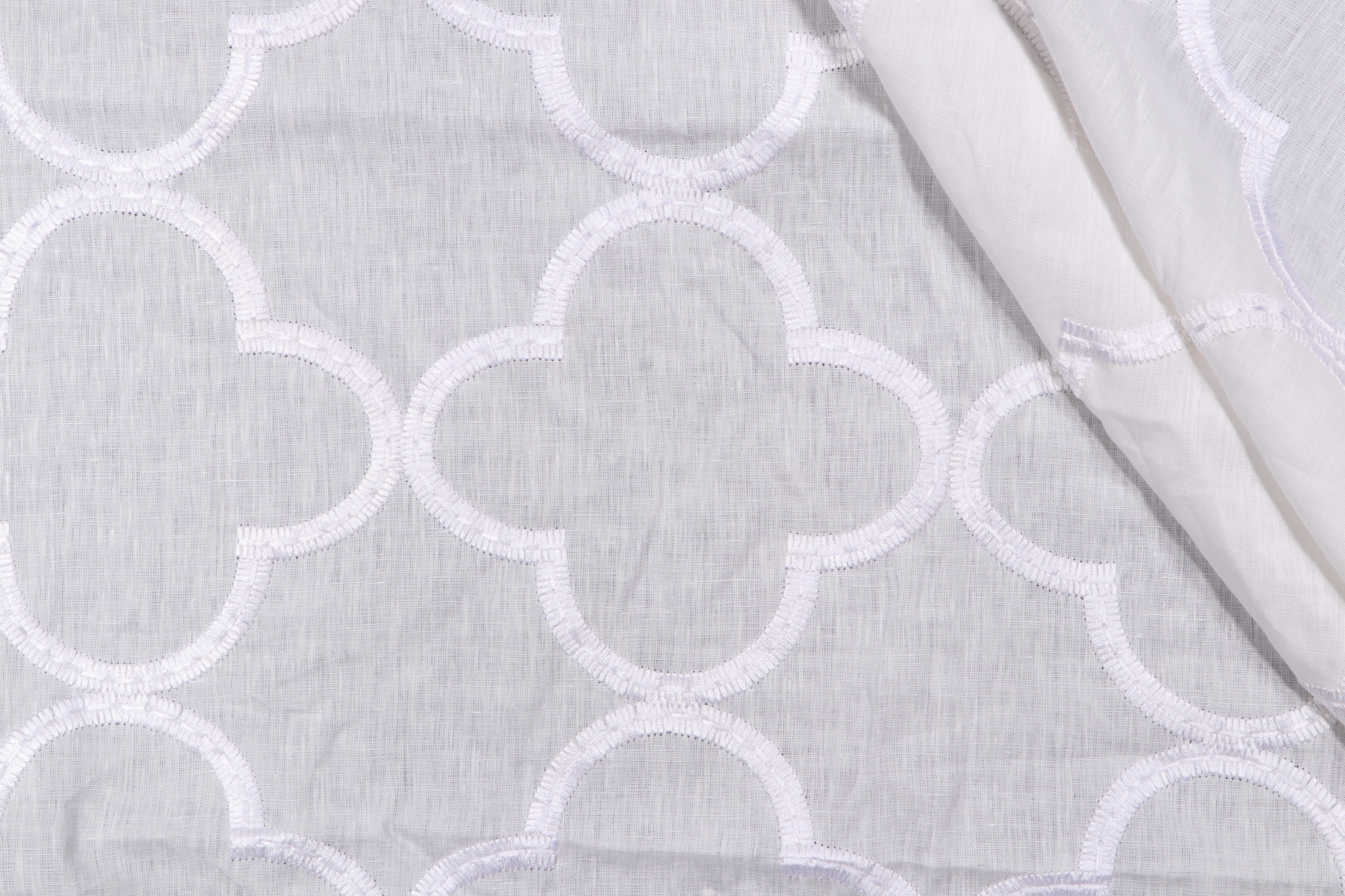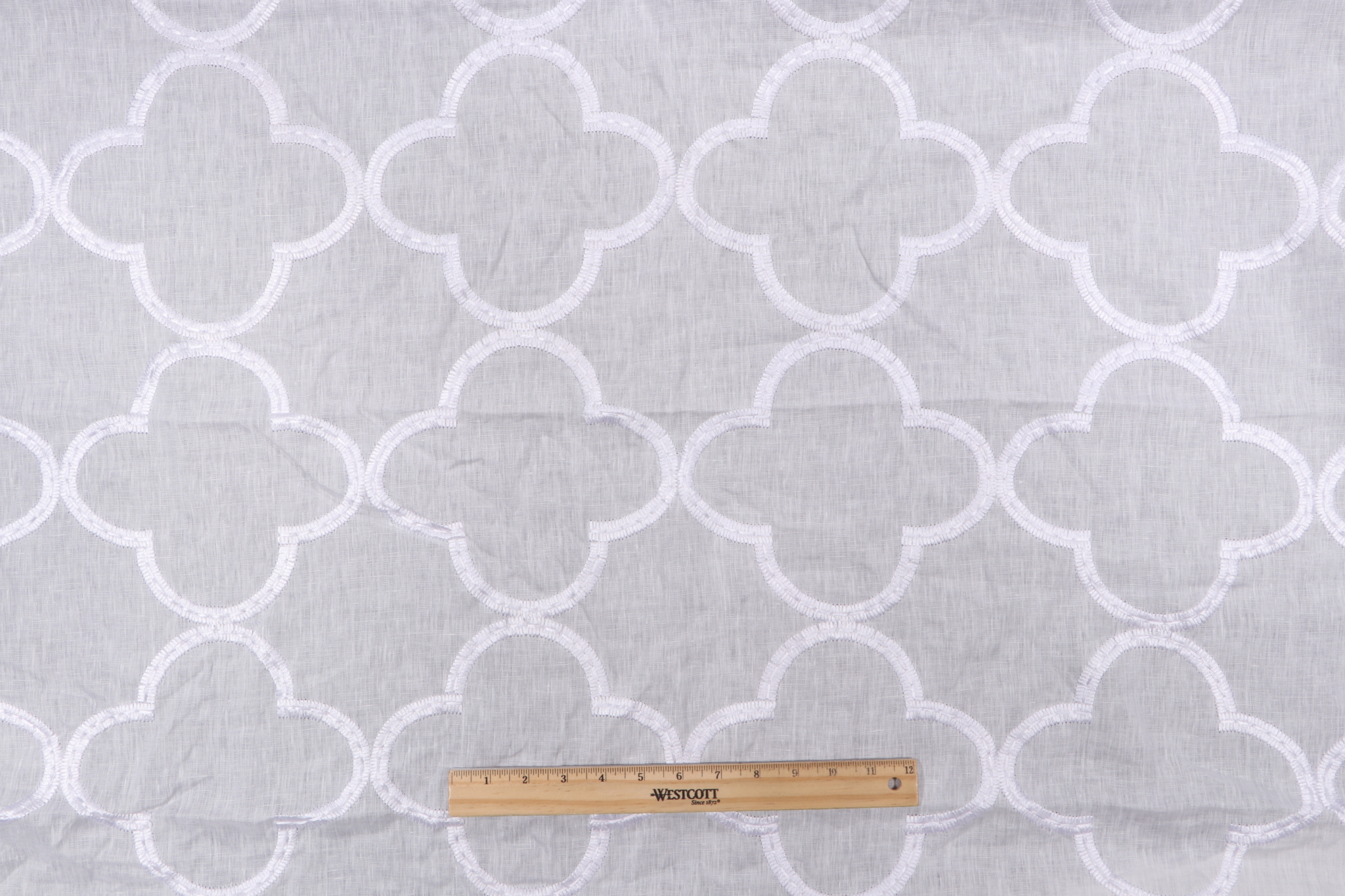 Thibaut Mara W716001 Sheer Embroidered Drapery Fabric in White is a remnant, which is sold as a whole piece.