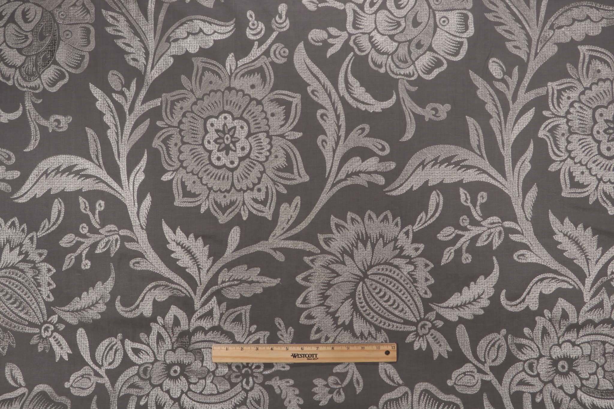 The length of this Thibaut Rivera W713019 Embroidered Drapery Fabric in Grey/Grey remnant is 5 yard(s).