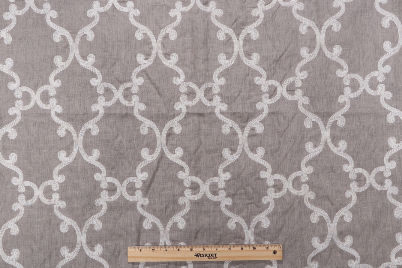 1 Yards Thibaut Roselli Trellis AW2561 Sheer Embroidered Drapery Fabric in White on Dark Grey Details