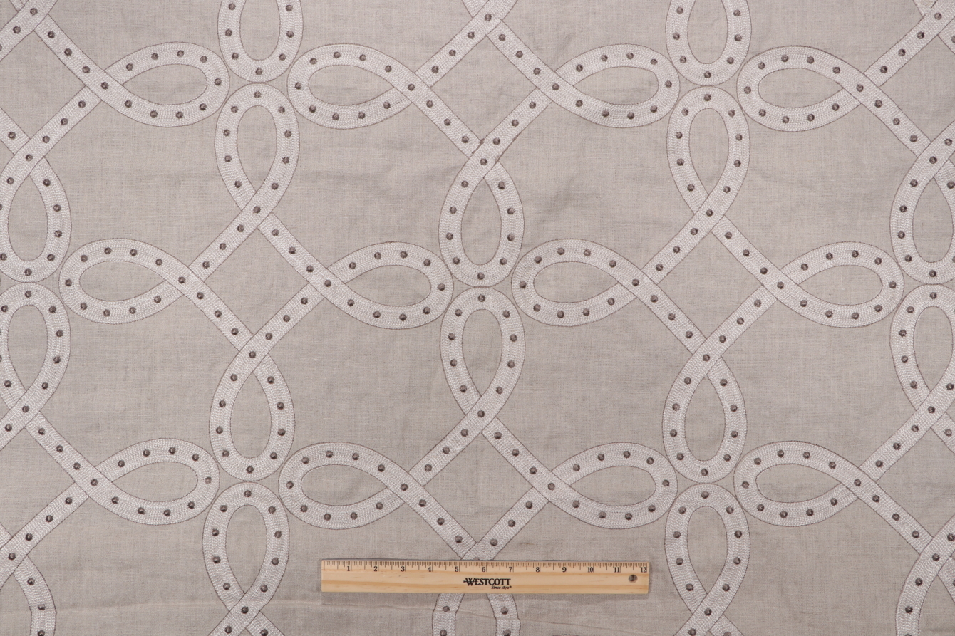2.8 Yards Thibaut Salina Ribbon Embroidered Linen Decorator Fabric in Linen AW1378 Details