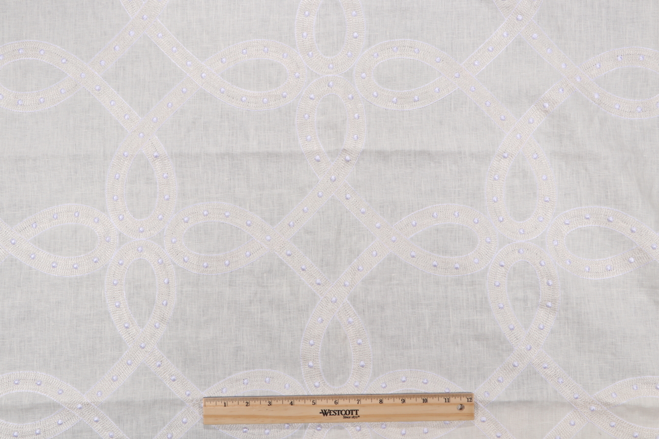 1.3 Yards Thibaut Salina Ribbon Embroidered Linen Decorator Fabric in White AW1376 Details