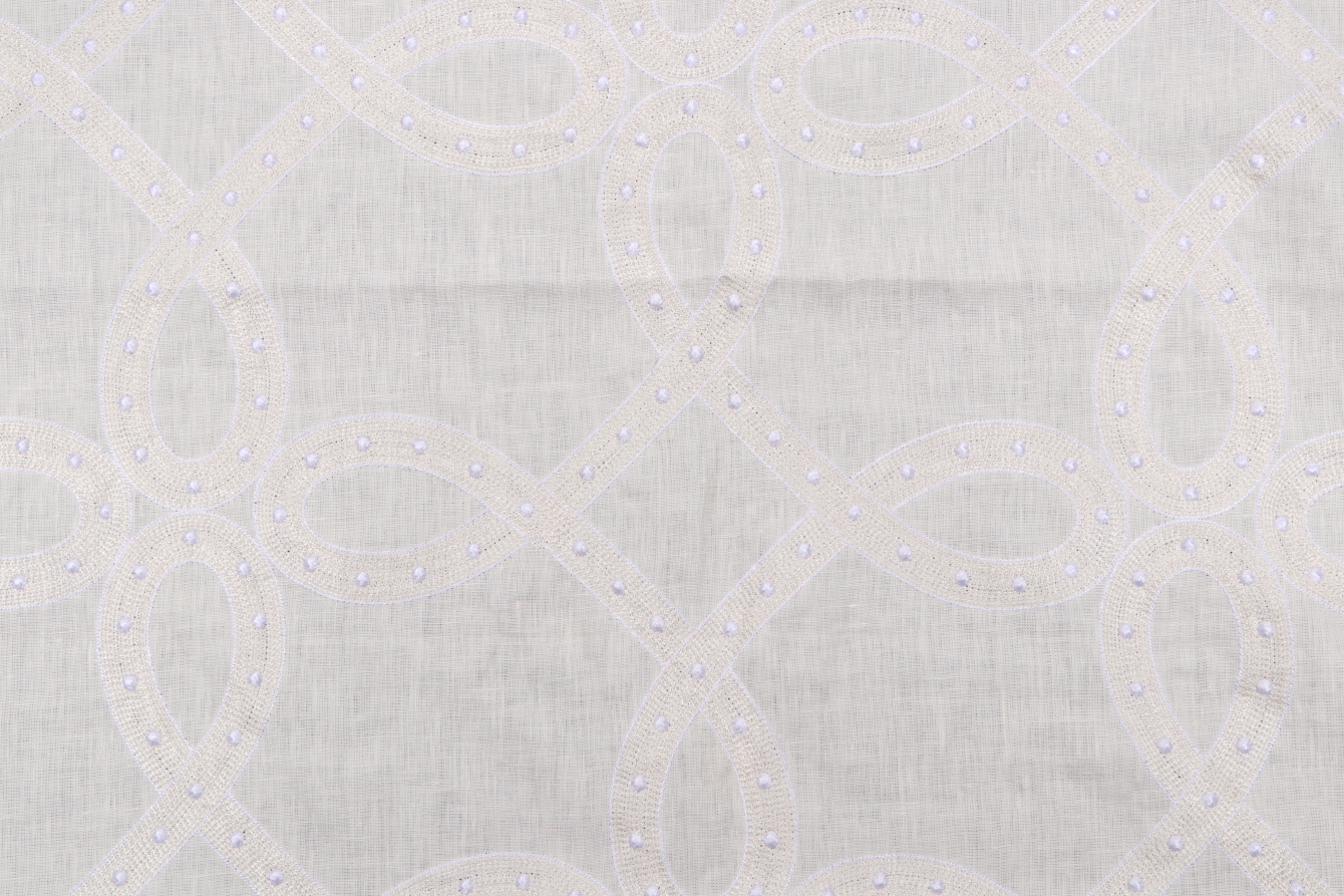Thibaut Salina Ribbon Embroidered Linen Decorator Fabric in White AW1376 is a remnant, which is sold as a whole piece.
