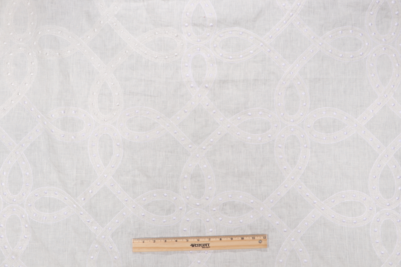 3.7 Yards Thibaut Salina Ribbon Embroidered Semi Sheer Linen Blend Drapery Fabric in White AW1376 Details