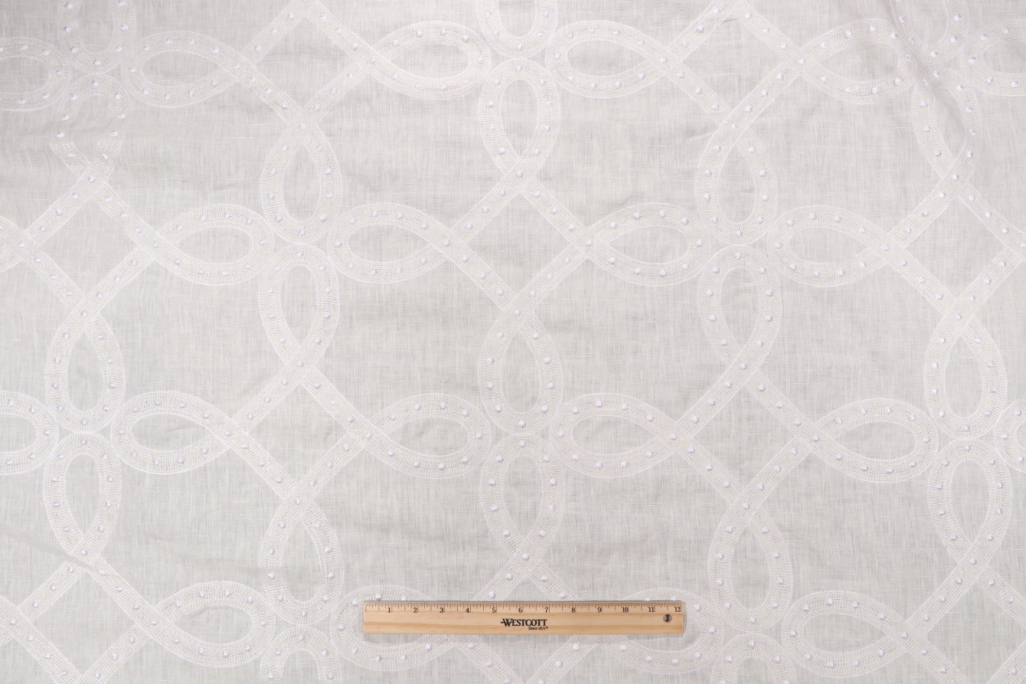 Thibaut Saline Ribbon AW1376 Embroidered Drapery Fabric in White is a remnant, which is sold as a whole piece.