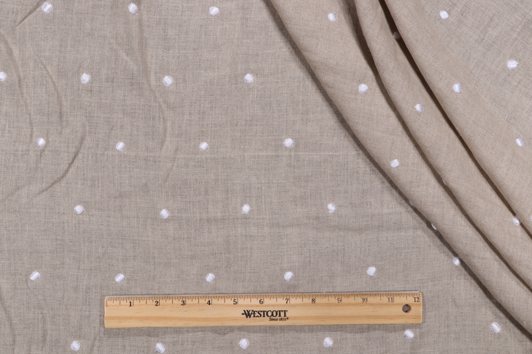 1.25 Yards Thibaut Sheer Dot AW7859 Embroidered Linen Drapery Fabric in Natural and White Details