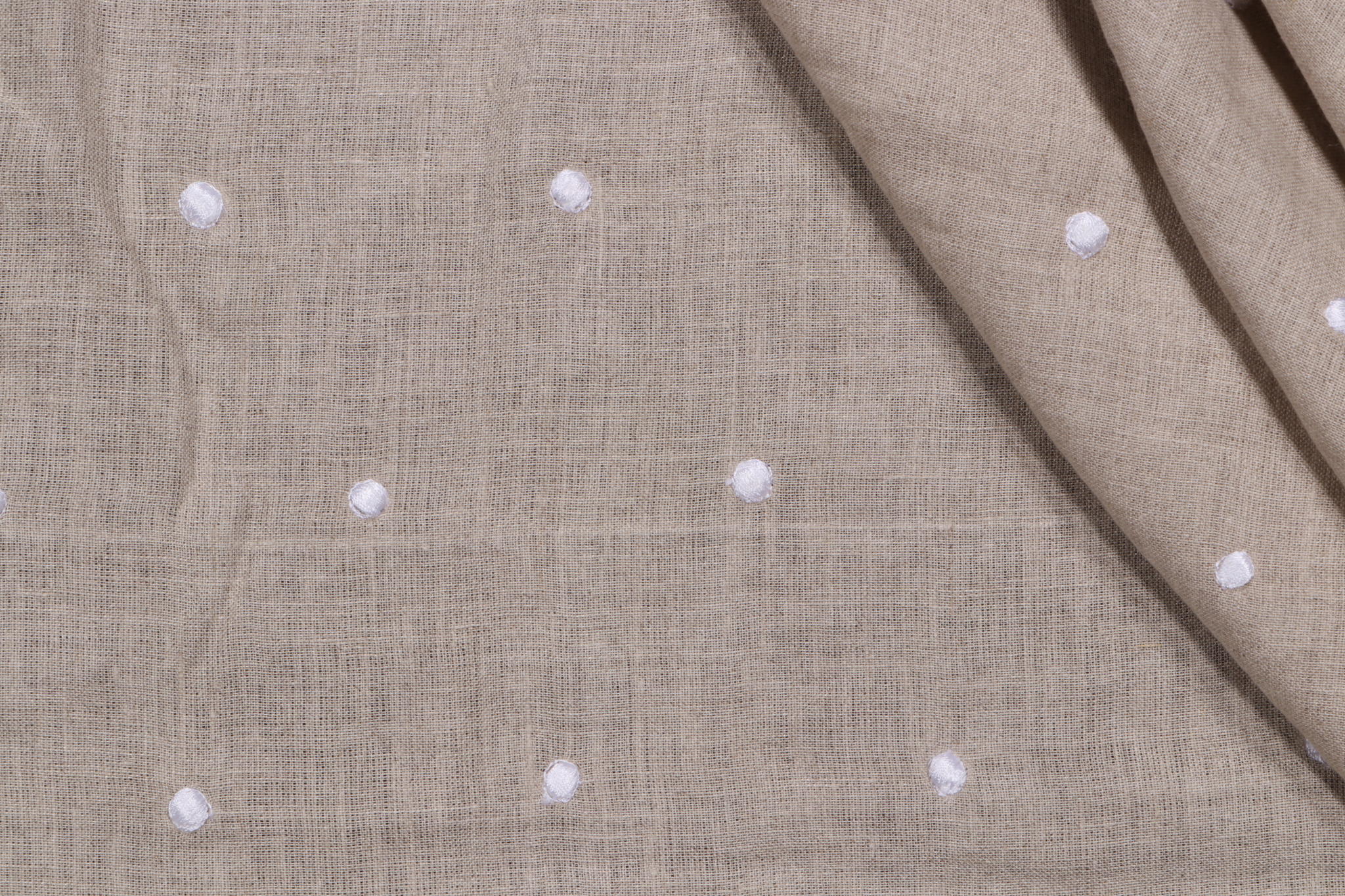 Thibaut Sheer Dot AW7859 Embroidered Linen Drapery Fabric in Natural and White is a remnant, which is sold as a whole piece.
