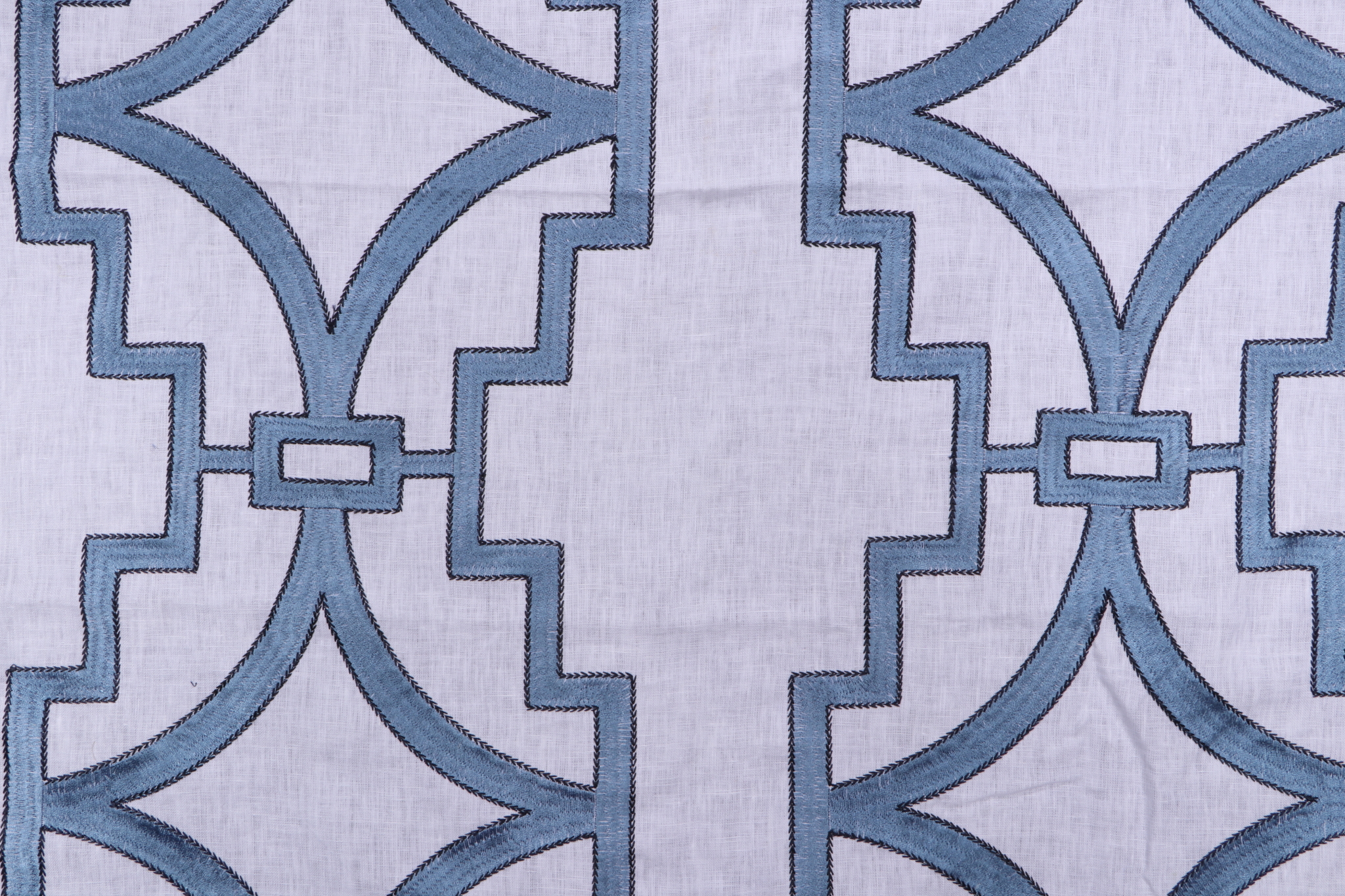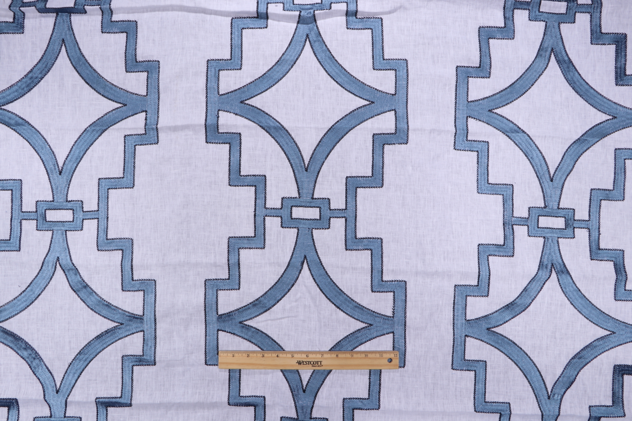 Anna French Songyue W736144 Embroidered Drapery Fabric in Blue for Thibaut is a remnant. Fabric remnants refer to leftover pieces of fabric from production runs at manufacturing sites or pieces that remain from by the yard stock. The lengths of these remnants can vary from a few inches to several yards and are typically sold at a reduced price, since they represent remaining inventory.