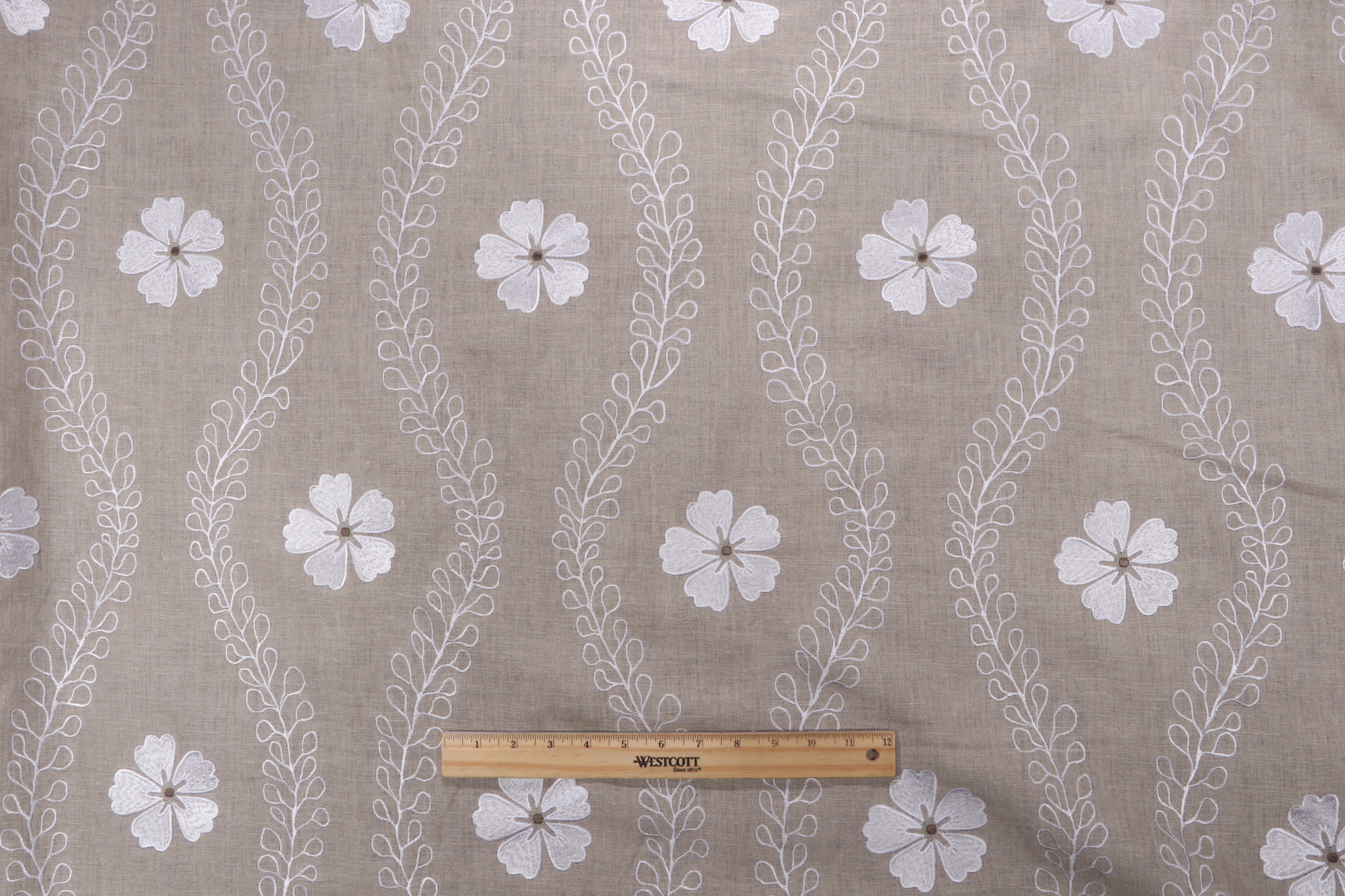 Thibaut Standish AW2551 Embroidered Drapery Fabric in Flax is a remnant, which is sold as a whole piece.