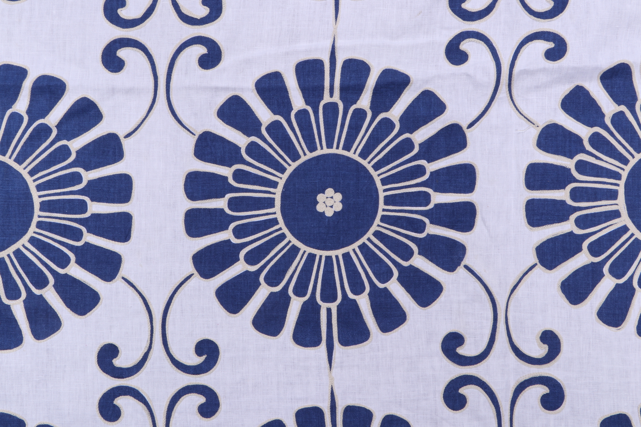 1 Yard Thibaut Sun Garden W716032 Printed & Embroidered Drapery Fabric in Blue Details