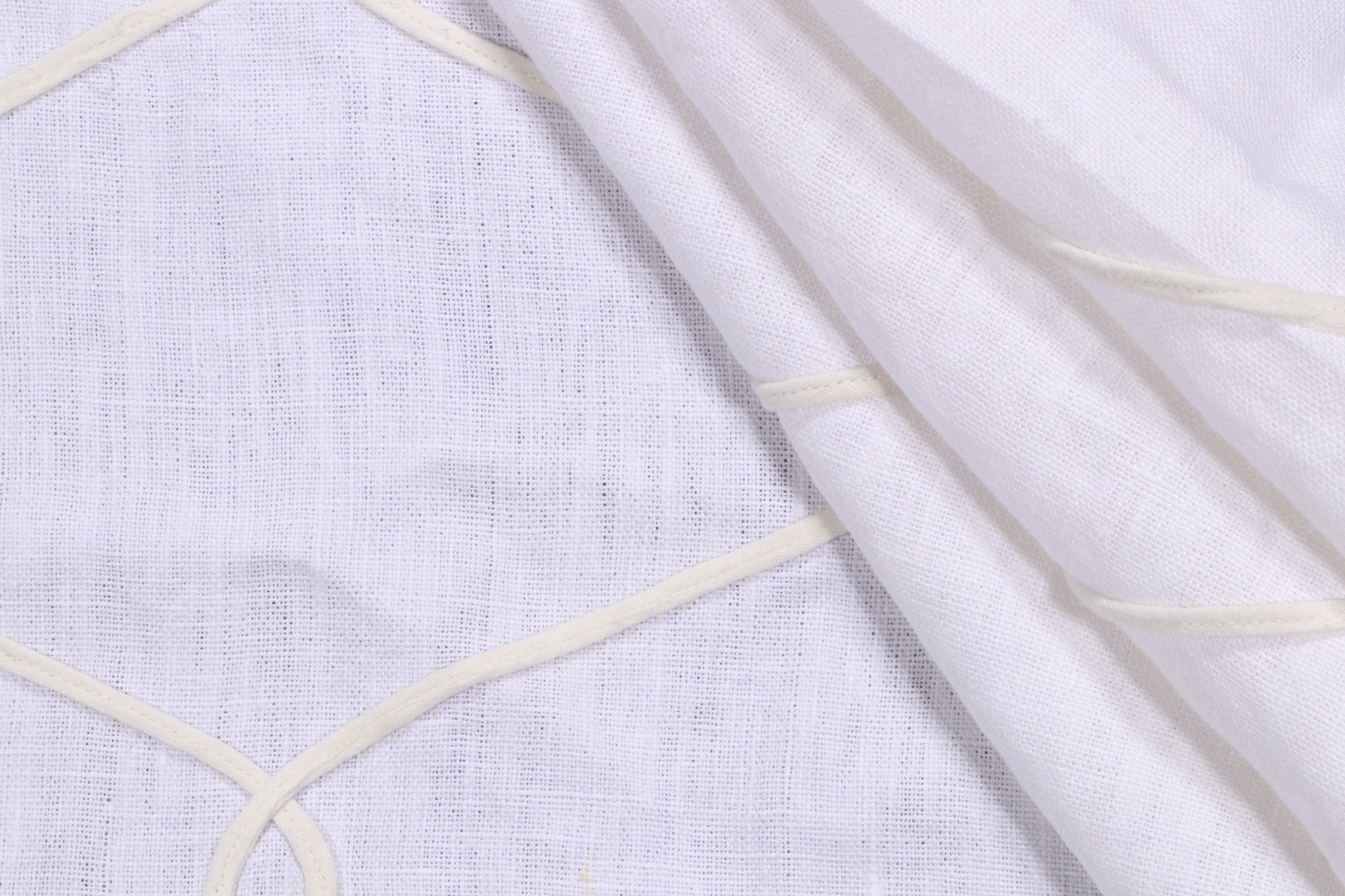 Thibaut Theresa Trellis AW7853 Embroidered Drapery Fabric in White is a remnant. Fabric remnants refer to leftover pieces of fabric from production runs at manufacturing sites or pieces that remain from by the yard stock. The lengths of these remnants can vary from a few inches to several yards and are typically sold at a reduced price, since they represent remaining inventory.