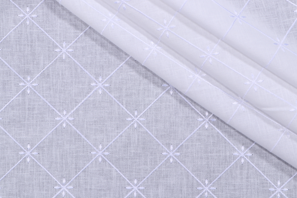 Trellis Embroidered Drapery Fabric in White is a remnant. Fabric remnants refer to leftover pieces of fabric from production runs at manufacturing sites or pieces that remain from by the yard stock. The lengths of these remnants can vary from a few inches to several yards and are typically sold at a reduced price, since they represent remaining inventory.