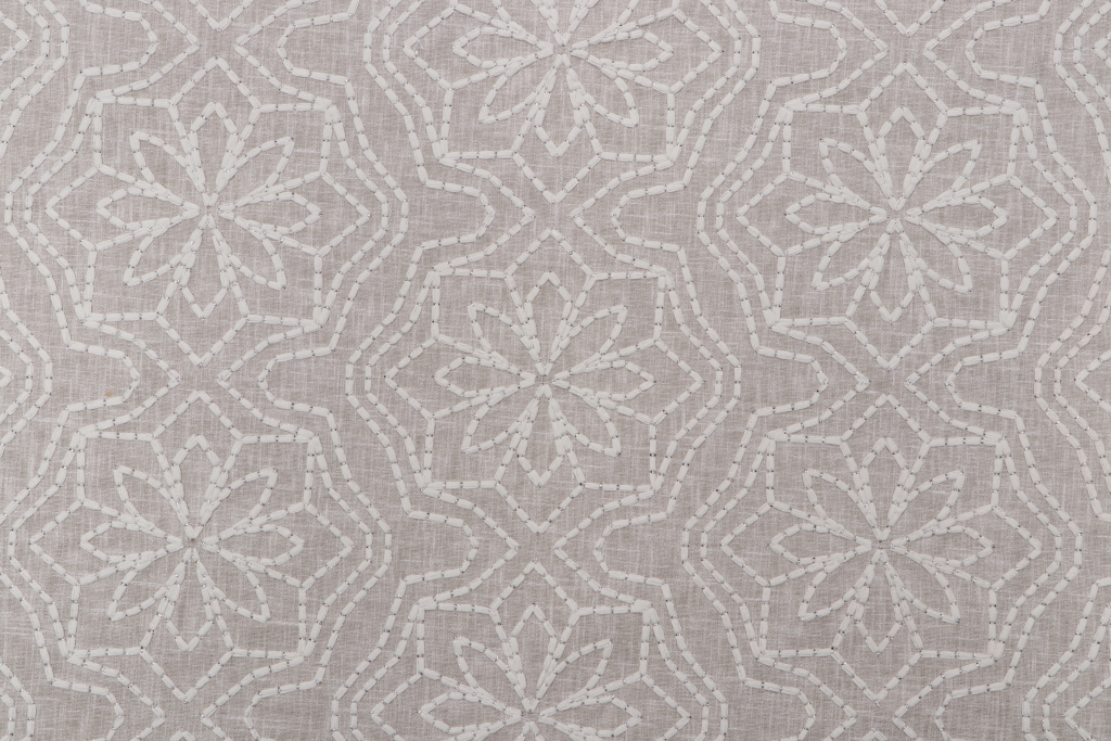 Sample orders of Valiant Fabrics Alpine Embroidered Drapery Fabric in Linen are not refundable.
