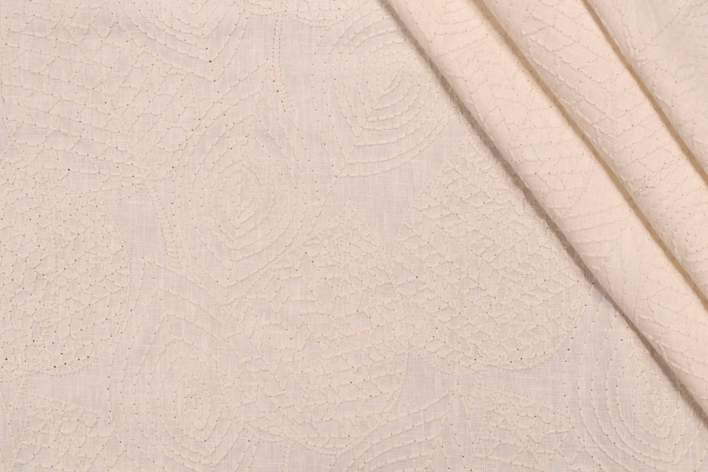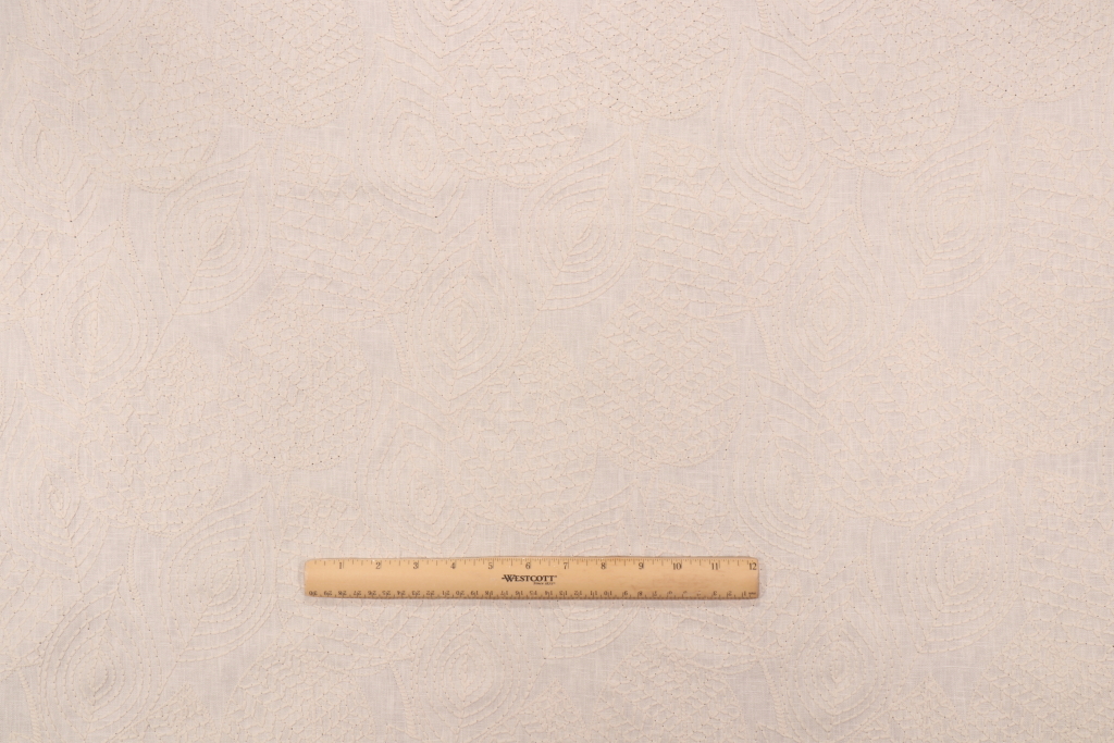0.88 Yards Valiant Fabrics Eden Embroidered Drapery Fabric in Cream Details