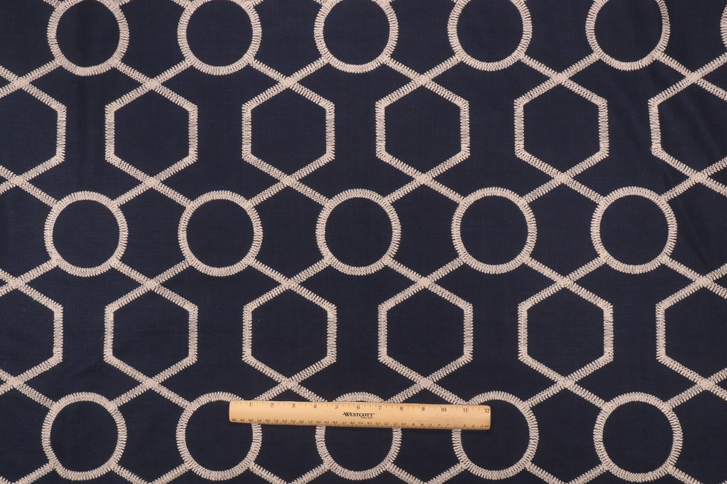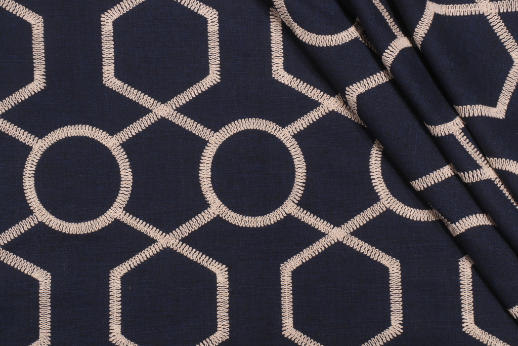 0.63 Yards Valiant Fabrics Kendall Embroidered Drapery Fabric in Navy Details