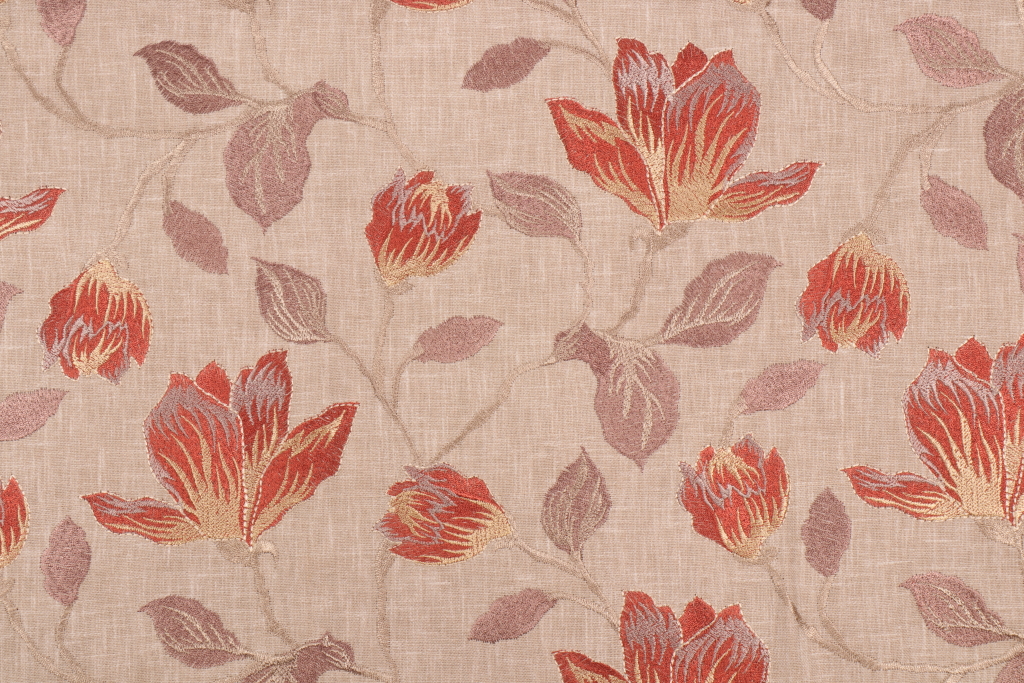 Offering 0.75 yards of Fabrics Lindsey, a fine embroidered drapery fabric designed by Valiant. This fabric is suitable for short curtains, decorative tiebacks, or smaller window treatments. For discerning designers, Valiant fabrics offers unmatched quality and sophistication. Perfectly balanced with hues of tan, rosy brown, indian red, and dark salmon, this fabric will surely enhance your application. Note: If you are unsure about the suitability of this fabric for your specific use case please contact us prior to ordering.