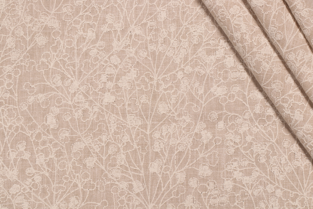 0.38 Yards Valiant Fabrics Lola Embroidered Drapery Fabric in Linen Details