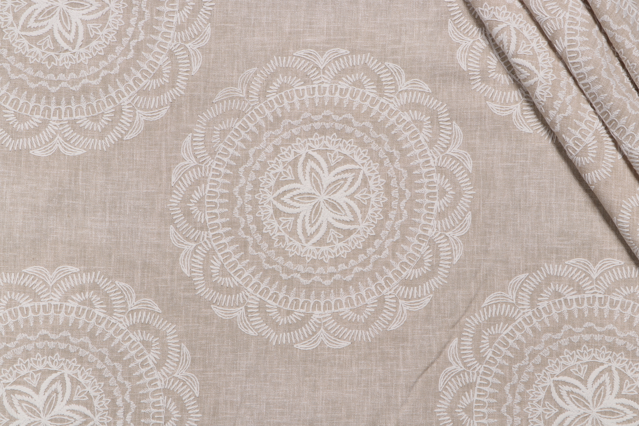 1 Yards Valiant Fabrics Mandala Embroidered Drapery Fabric in Linen Details