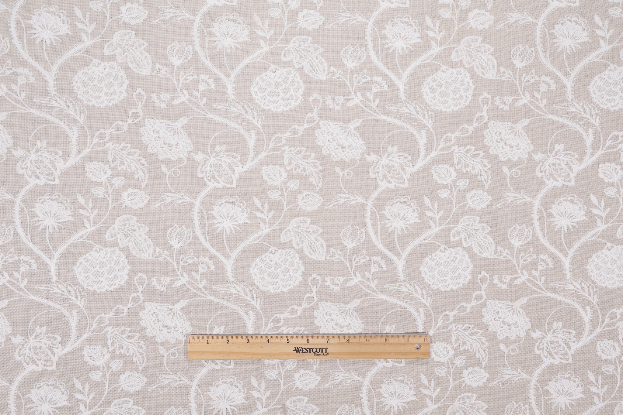 Please allow 2-3 business days for your Valiant Fabrics Marissa Embroidered Drapery Fabric in Pebble sample to ship via USPS Priority mail.