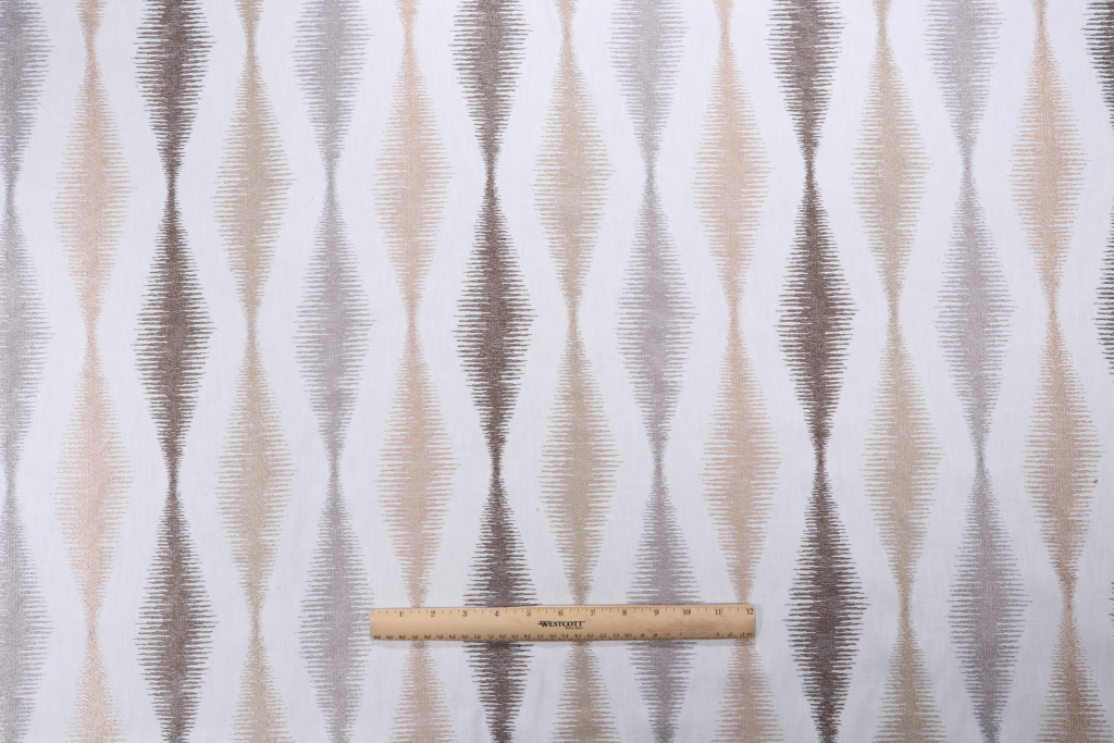 If you order a sample of Valiant Fabrics Miramont Embroidered Drapery Fabric in Champagne the size of the swatch you receive will be approximately 4" x 6". This is enough fabric to verify color and texture, but may not be large enough to capture an entire pattern.