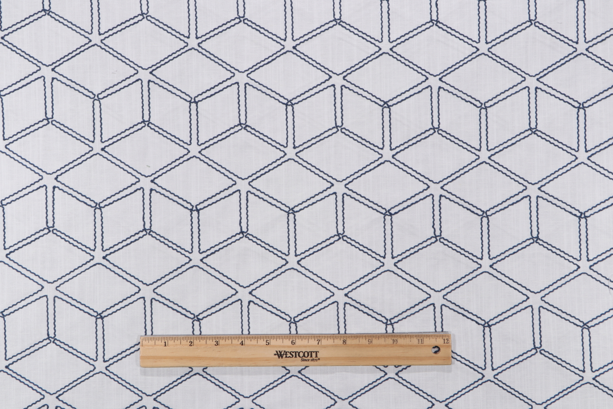 If you order a sample of Valiant Fabrics Optic Embroidered Drapery Fabric in Nautic the size of the swatch you receive will be approximately 4" x 6". This is enough fabric to verify color and texture, but may not be large enough to capture an entire pattern.