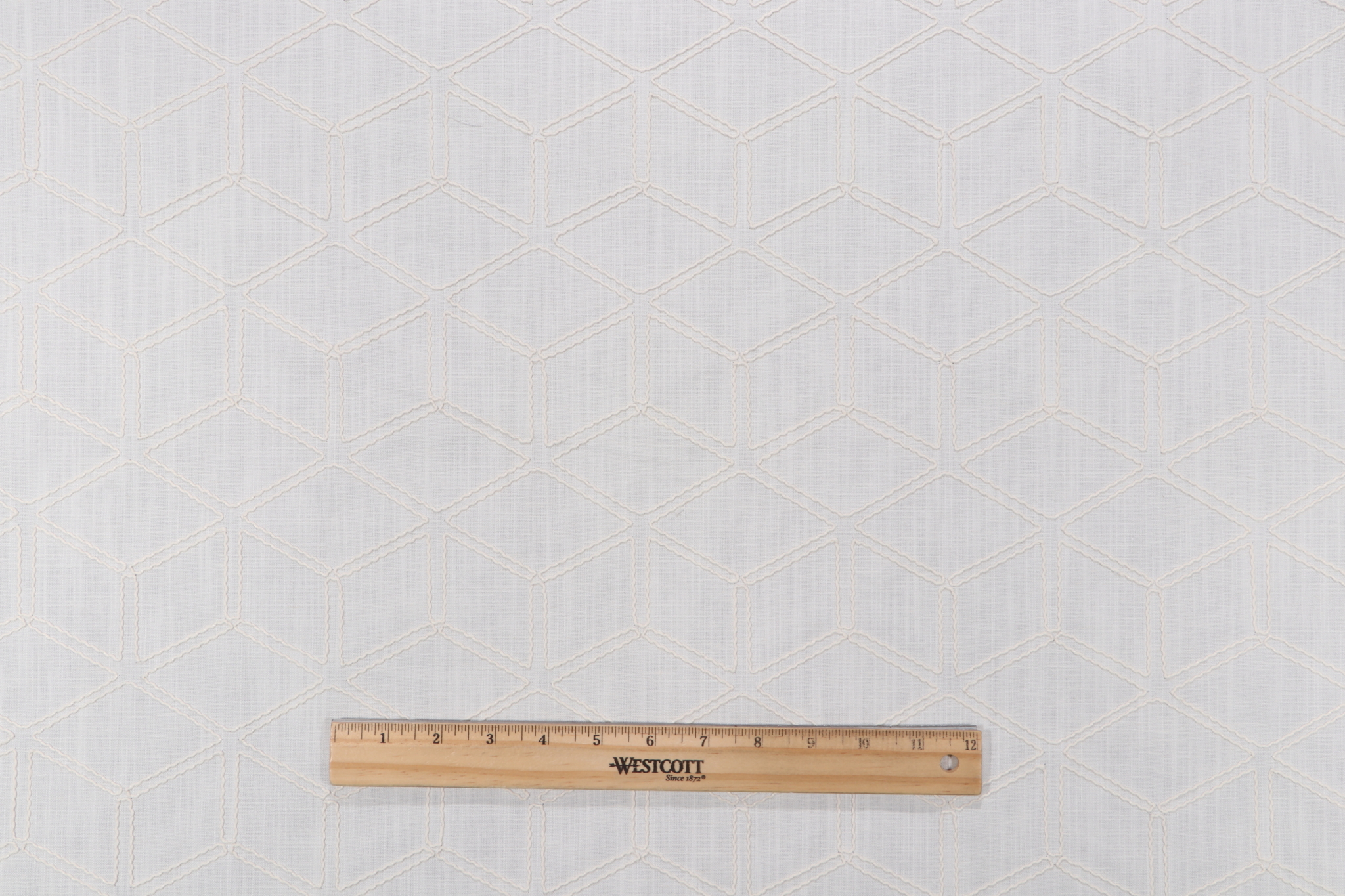 If you order a sample of Valiant Fabrics Optic Embroidered Drapery Fabric in Vanilla the size of the swatch you receive will be approximately 4" x 6". This is enough fabric to verify color and texture, but may not be large enough to capture an entire pattern.
