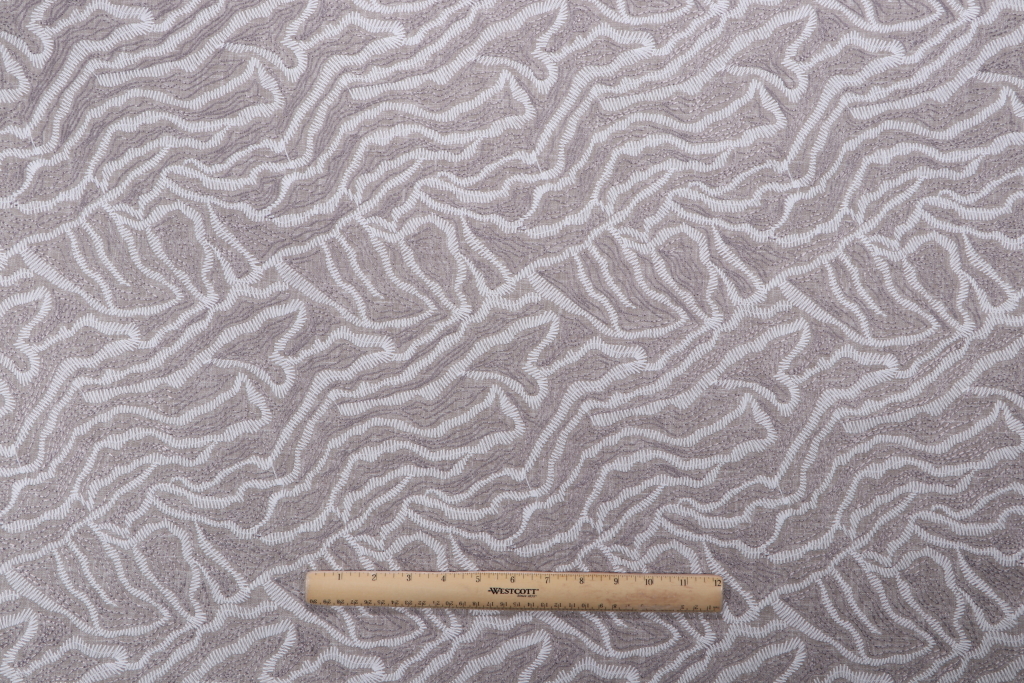 Valiant Fabrics Paradox Embroidered Drapery Fabric in Stone is a remnant, which is sold as a whole piece.