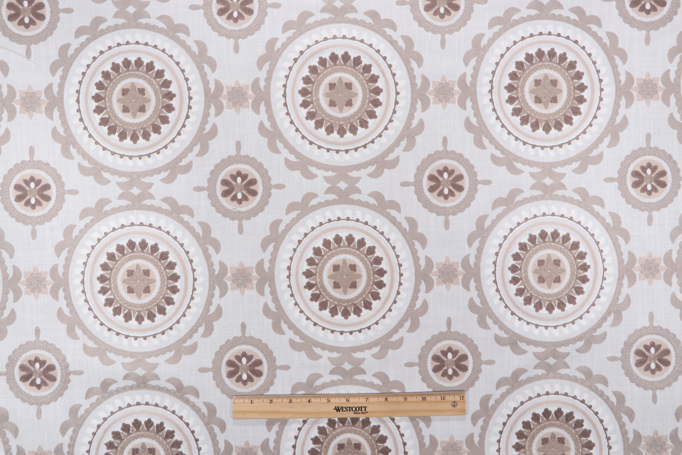 1 Yards Valiant Fabrics Zanzibar Embroidered Drapery Fabric in Natural Details