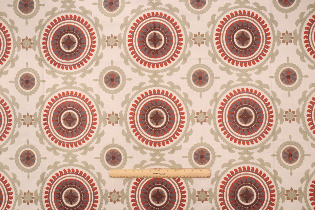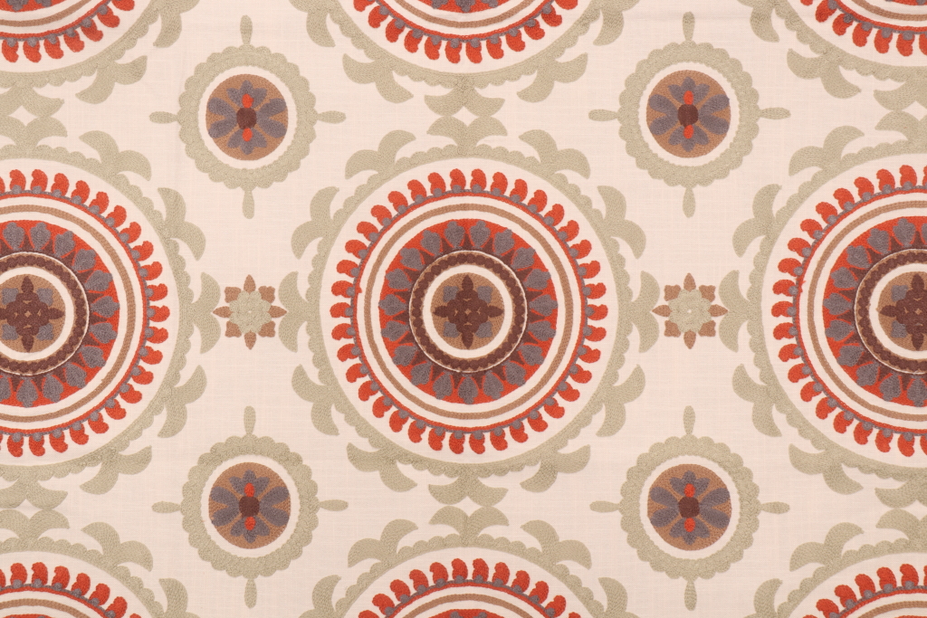 Valiant Fabrics Zanzibar Embroidered Drapery Fabric in Spice Market is a remnant, which is sold as a whole piece.