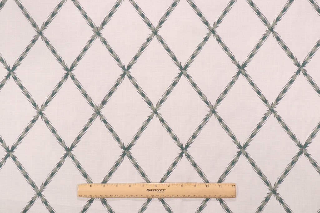 Waverly Trade Winds Emb Woven Embroidered Decorator Fabric in Juniper is a remnant. Fabric remnants refer to leftover pieces of fabric from production runs at manufacturing sites or pieces that remain from by the yard stock. The lengths of these remnants can vary from a few inches to several yards and are typically sold at a reduced price, since they represent remaining inventory.