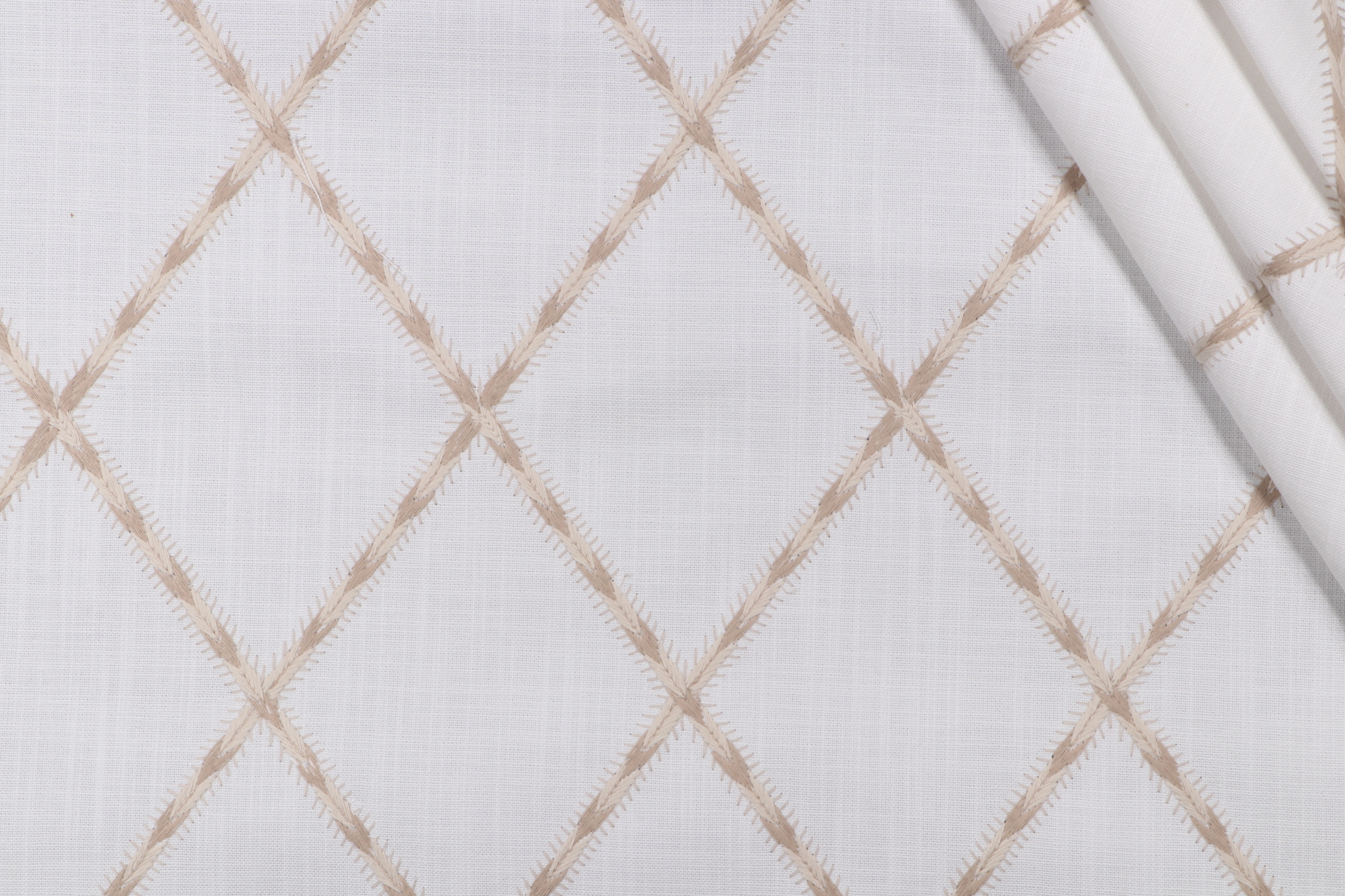 Waverly Trade Winds Embroidered Drapery Fabric in Linen is a remnant. Fabric remnants refer to leftover pieces of fabric from production runs at manufacturing sites or pieces that remain from by the yard stock. The lengths of these remnants can vary from a few inches to several yards and are typically sold at a reduced price, since they represent remaining inventory.