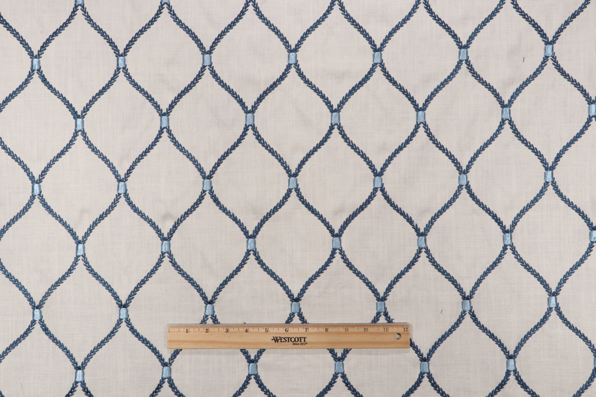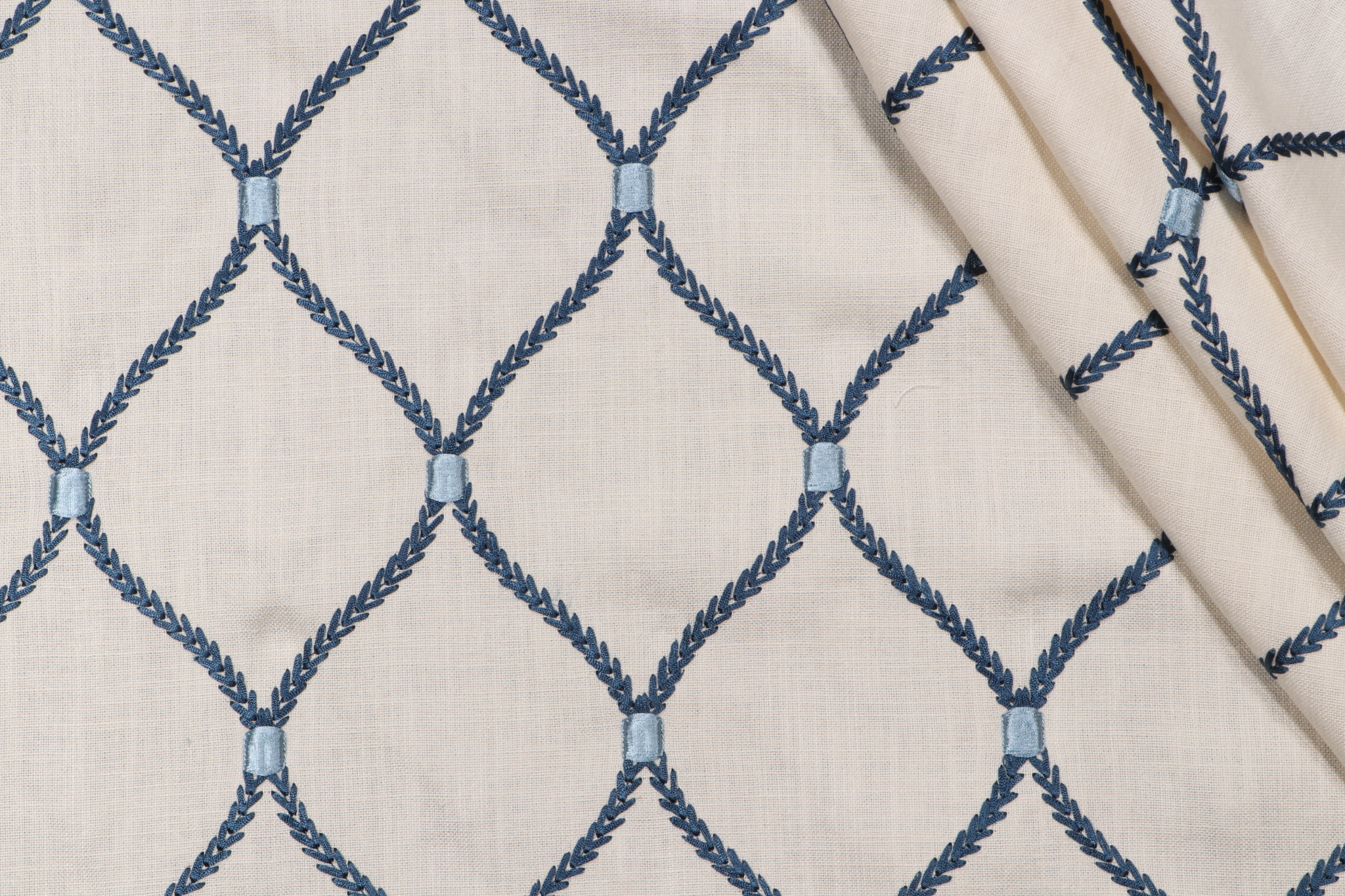 Williamsburg Deane Embroidered Drapery Fabric in Porcelain is a remnant, which is sold as a whole piece.